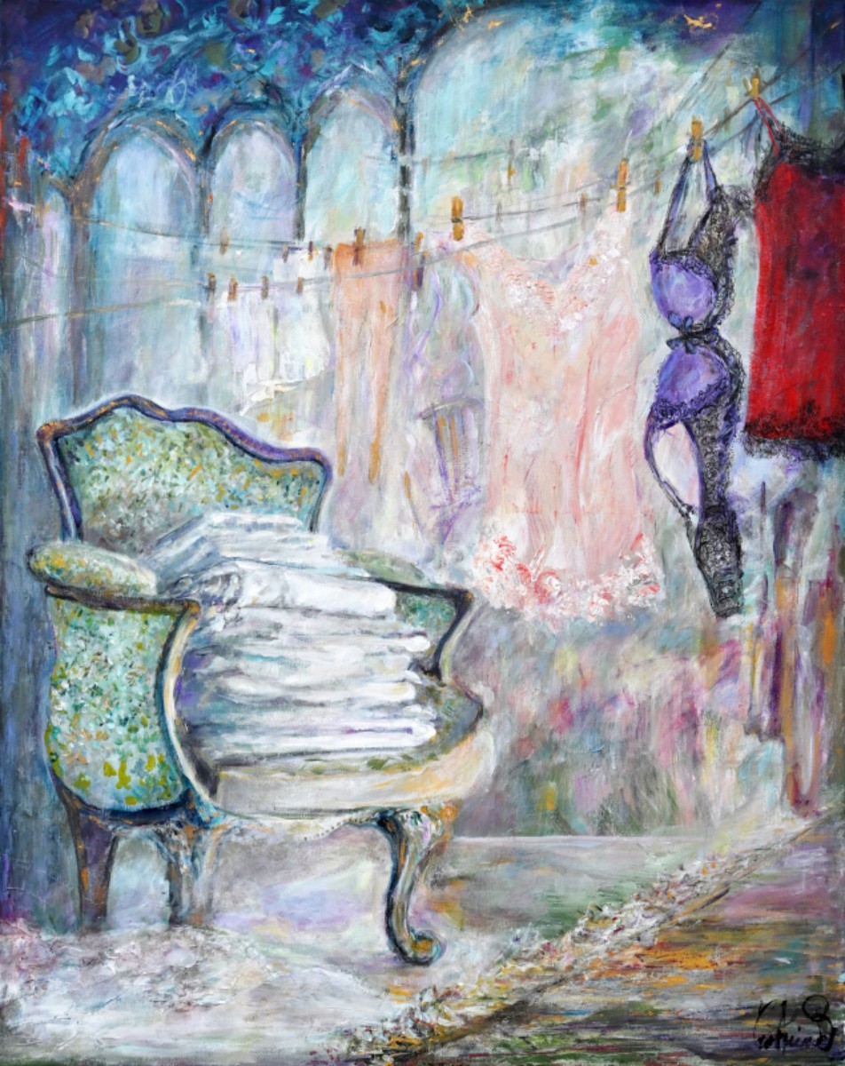 Depuis 2017, j'écris des spectacles vivants et je mets en scène mes tableaux par la projection. J'ai réalisé un Hommage à Edith Piaf en créant toute une collection de toiles sur ses chansons et ainsi j'ai créée le spectacle "Une poupée dans la vitrine'" qui a été jouée en Nouvelle Aquitaine. En ce moment je mets en scène un nouveau spectacle sur les femmes "Histoires de Femmes" où j'ai peint tous les tableaux projetés qui accompagnent ce "Woman Show" - sortie ....espérée en 2023 selon les évènements.