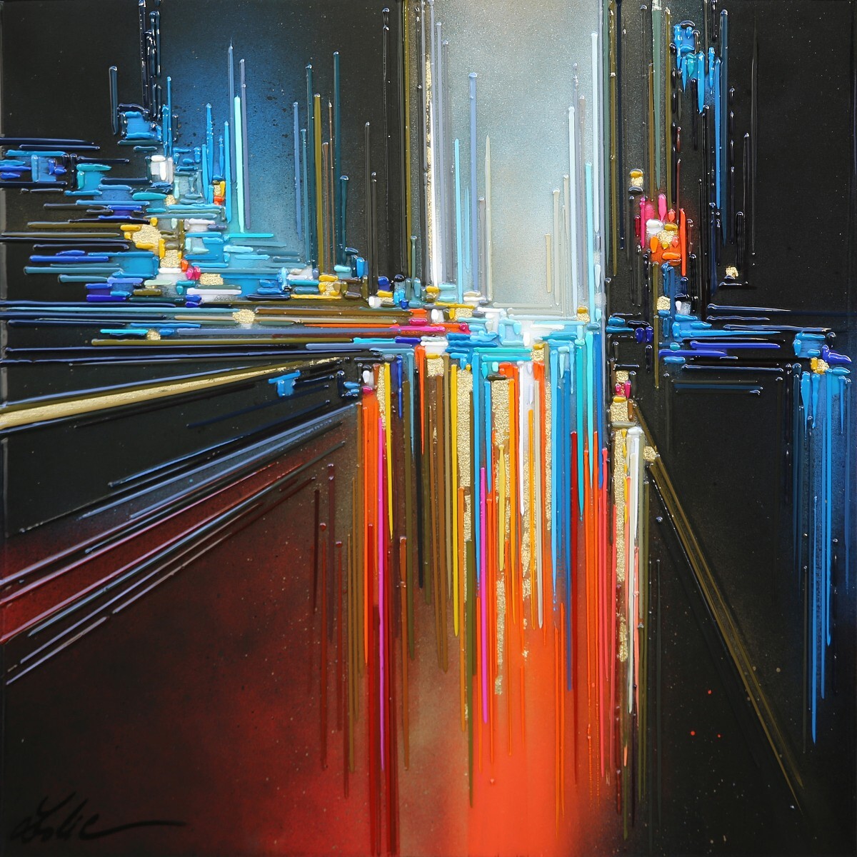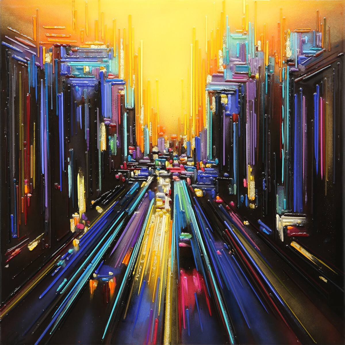 "City light" 80x80 cm. Technique mixte sur toile, disponible.