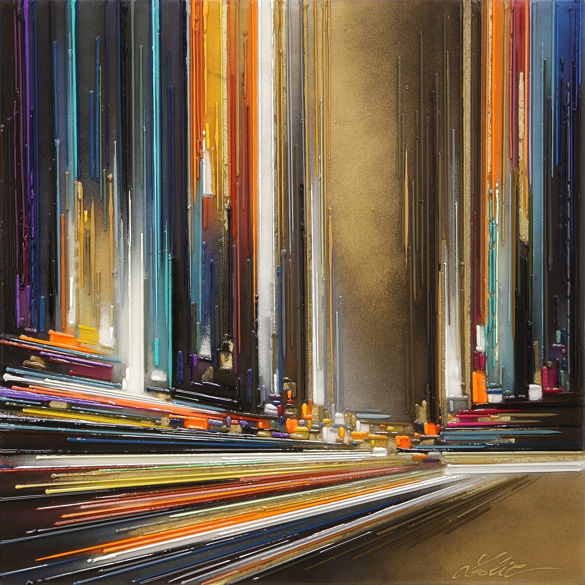 "Golden night" 80x80 cm technique mixte sur toile Réf: URB0529 disponible