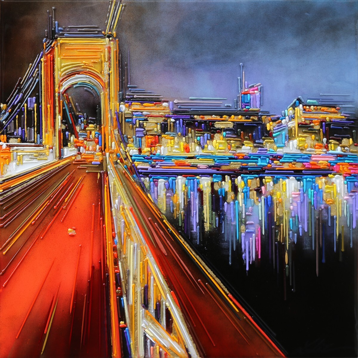 VENDUE " Nuit urbaine " 80x80 cm Technique mixte sur Toile Réf: URB0455