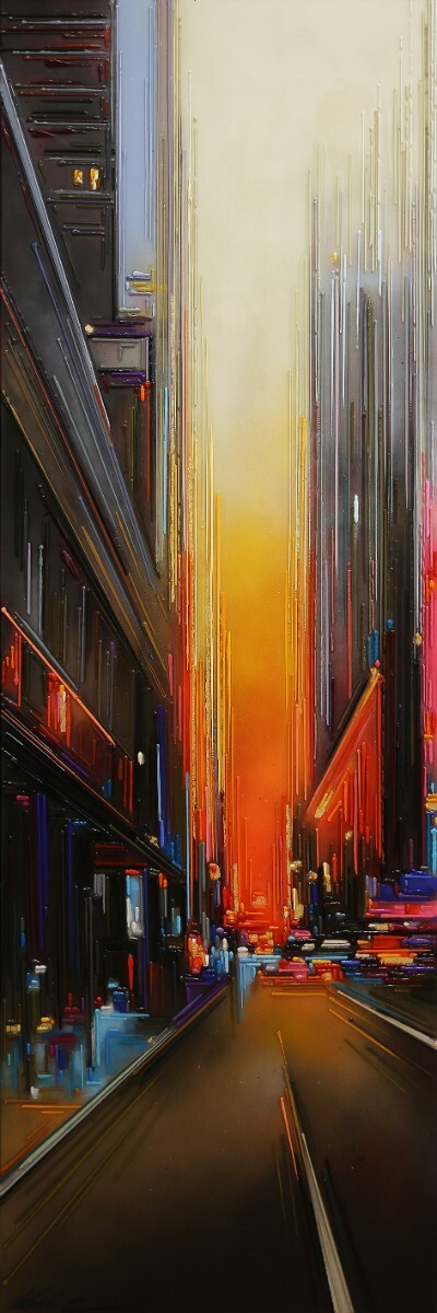 VENDUE " Cité urbaine " 40x120 cm Huile/toile Technique mixte