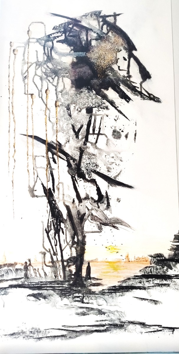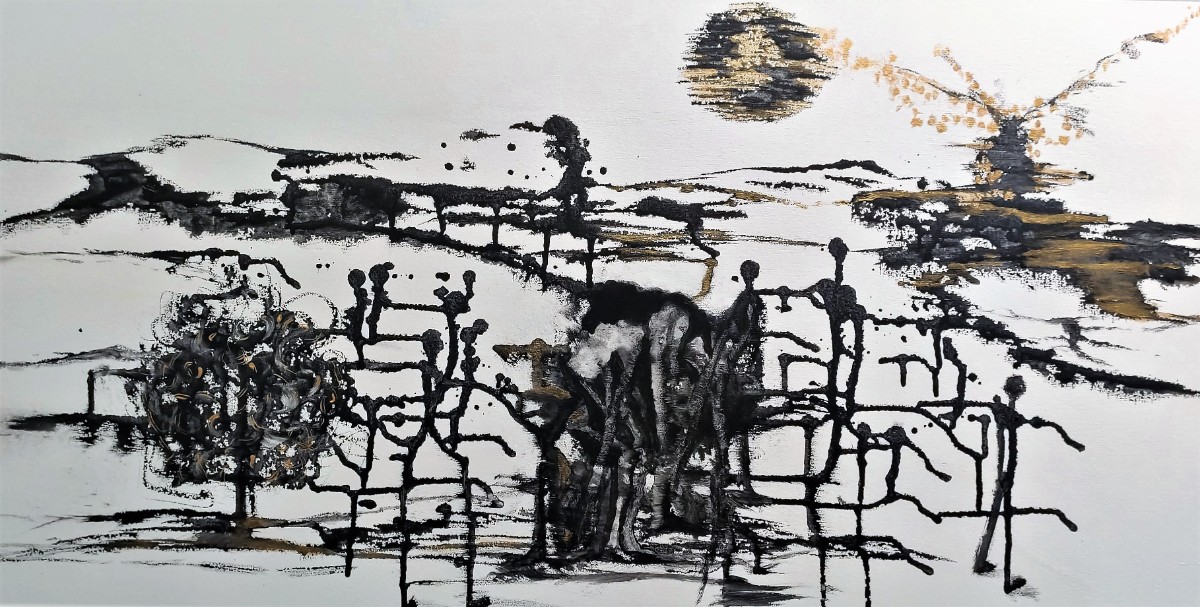 Entre figuratif et abstrait je veux provoquer chez le spectateur l'envie d'entrer à l'intérieur de l’oeuvre, de s'y perdre et de se raconter une histoire personnelle, c'est pourquoi je tiens à ce que la lecture de mes oeuvres se fasse en deux temps :