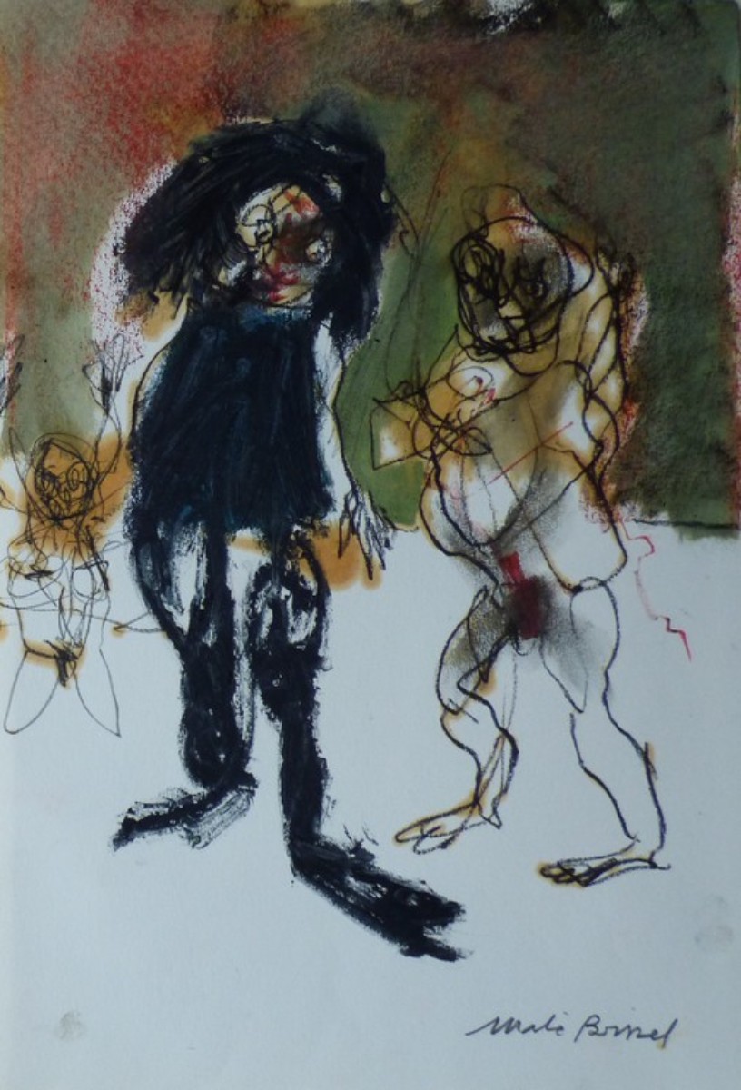 Mahé Boissel est née à Perpignan. Elle vit et travaille à Paris et Marseille. Sa jeunesse troublée par des problèmes de santé et par des relations familiales conflictuelles transparaît dans son univers pictural. Mahé Boissel, de sa place de femme, interroge sans cesse l’humain pour connaître son secret : comment fait-il sa vie ? De quelle place nous parle-t-il ? L'artiste alors pose l’humain seul au centre de l’oeuvre, ou en dialogue à plusieurs. La construction est soit hiératique, soit suit les diagonales, ou encore s’élabore sur différents plans basculés sur un seul comme pour échapper à la perspective euclidienne et nous amener vers d’autres points de vue. Ses œuvres sont des mises en scène théâtralisées de le misère des hommes.