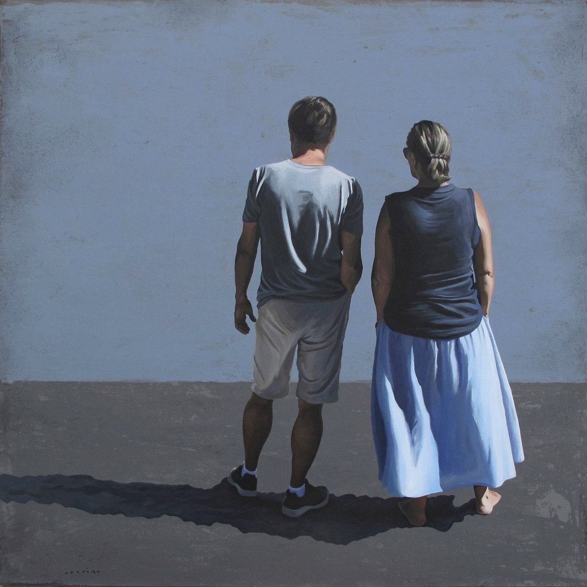 Marylin Cavin, artiste franco-suisse contemporaine peint des personnages naviguant dans des environnements épurés, représentant des scènes qui reflètent notre monde contemporain. Avec l’aspiration de plonger dans le pouls du présent, elle dépeint notre société à travers le prisme des postures, des attitudes et des scènes du quotidien. Celles-ci portent souvent l’empreinte distincte de la vie moderne, influencée par des éléments tels que les téléphones portables, le tourisme de masse et l’évolution des habitudes vestimentaires.