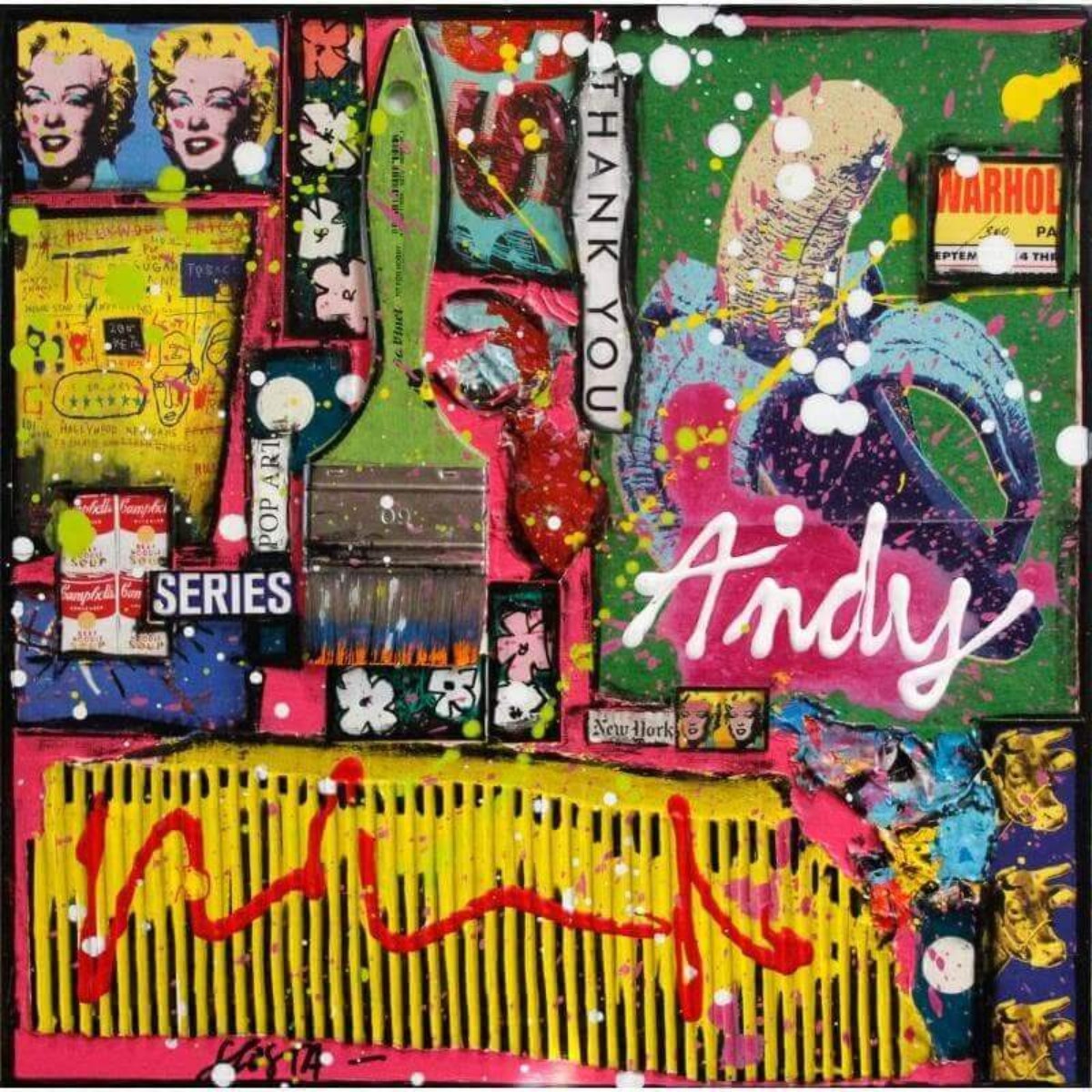 Inspirée par le pop art comme l'expressionisme abstrait, je propose un travail tout en matière et mouvement. Un dialogue vivant entre l'énergie brute et l'expression graphique, les couleurs intenses et le noir et blanc, une sorte de chaos en équilibre.