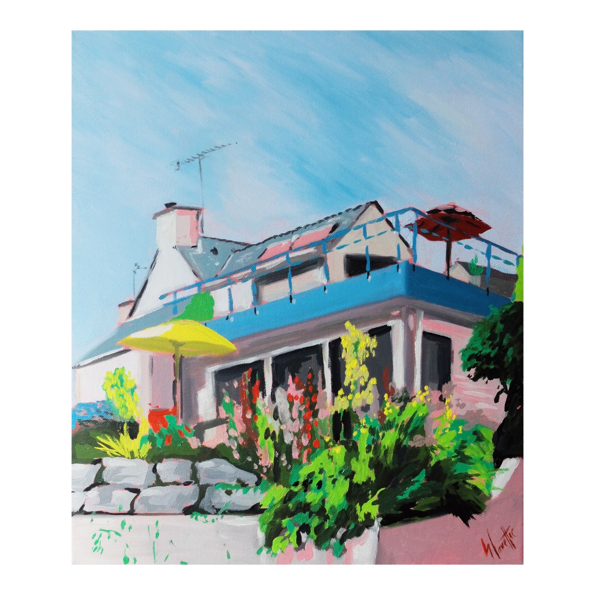 houce facing the shaded shores maison face au rivages ombragés oil 80 x 80 cm 2024 3.jpg