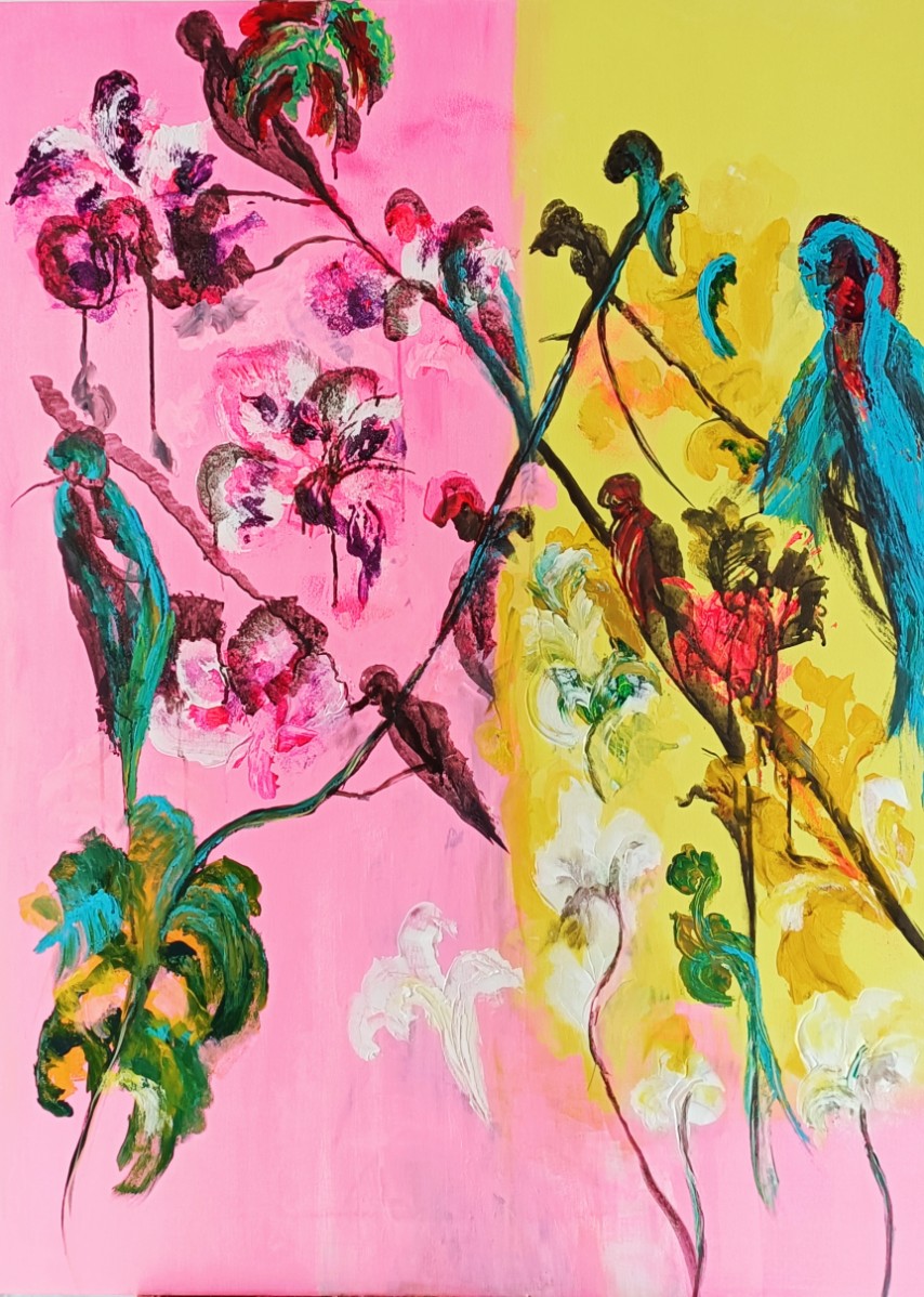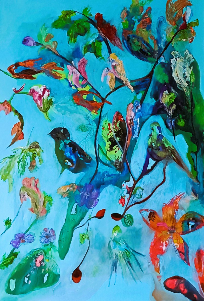 En explorant la palette infinie de couleurs et de formes que nous offre la nature, elle crée des œuvres qui invitent le spectateur à ressentir l'harmonie qui émane de chaque élément.