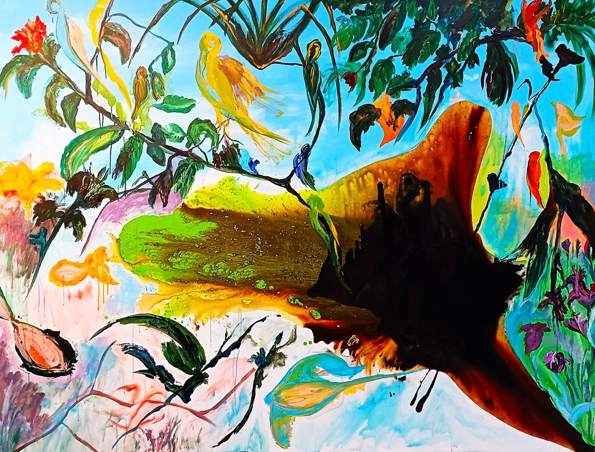Ses thèmes de prédilection, l’impalpable, la fluidité, le souffle, les cartographies imaginaires, les mangroves qui donnent de la résonance à ses créations lyriques et abstraites où les aplats et les nuances se superposent pour aller vers des rendus improbables.