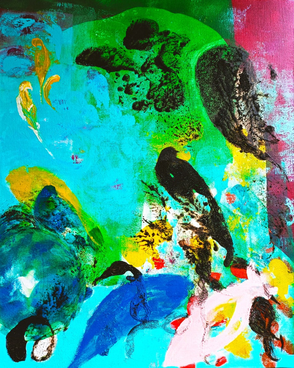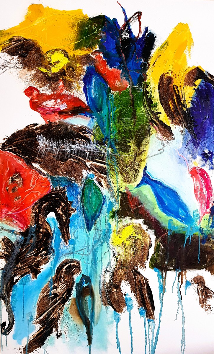 Il revient le bonheur ,huile et encres,pastel , 100x70, 2024.jpg