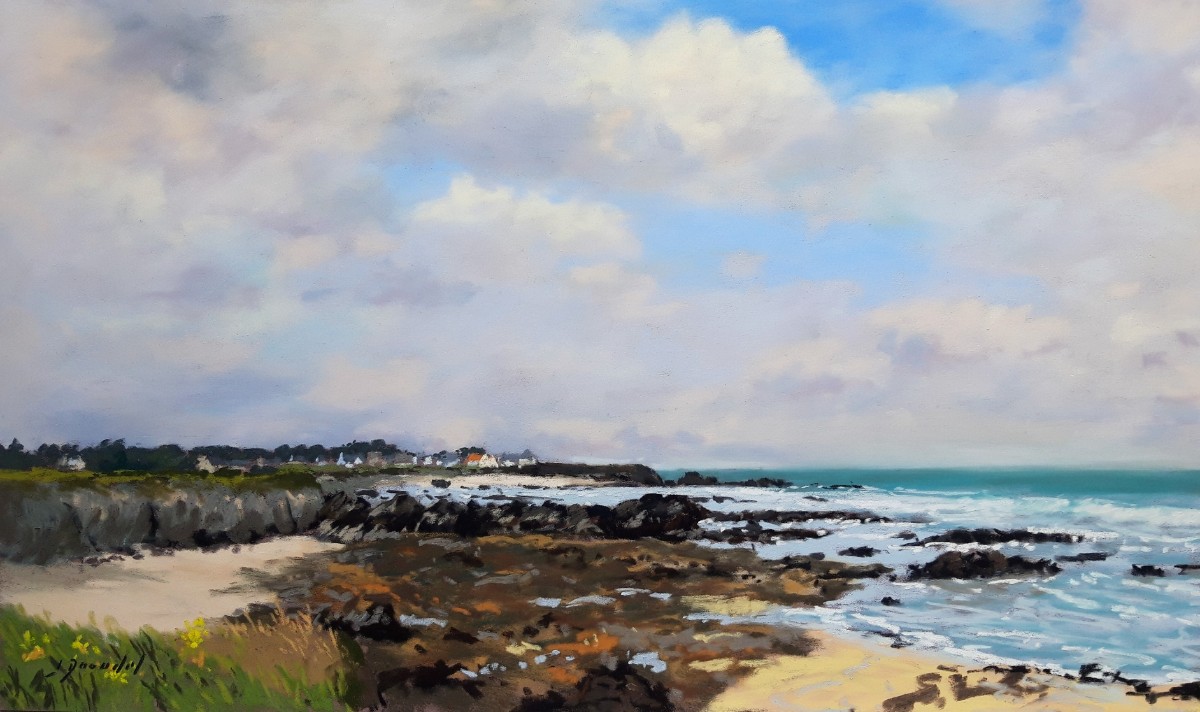 C’est dans son Finistère qu’il a dès son enfance ses premiers contacts avec la peinture dans l’atelier du peintre concarnois RAVALLEC où il vient le vendredi, jour de marché respirer les effluves de l’essence de térébenthine en regardant le maître au travail derrière son chevalet. Plus tard, à l’adolescence , il découvre à Pont Aven les paysagistes SAVIGNY, COULIOU et bien d’autres qui le motivent à travailler en plein air.
