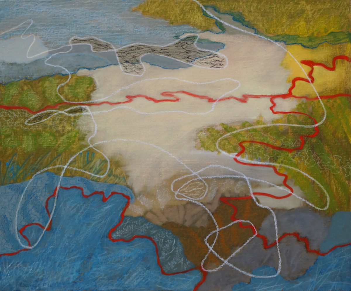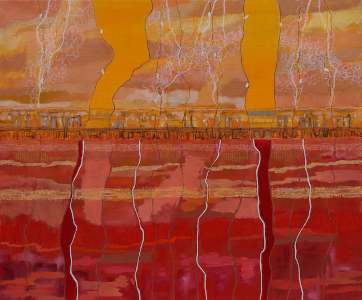 La couleur utilisée dans une grande variété de traitements révèle de manière réelle ou symbolique la lumière qu’elle ressent au fond de chaque être. Ce travail représente pour elle la diversité de l’âme et sa complexité. Les thèmes choisis pour exprimer sa recherche reflètent son attention à l’humain et au chemin qu’il parcourt : le pèlerin, Tristan et Isolde, le désert, le pont, la nature dans la ville.