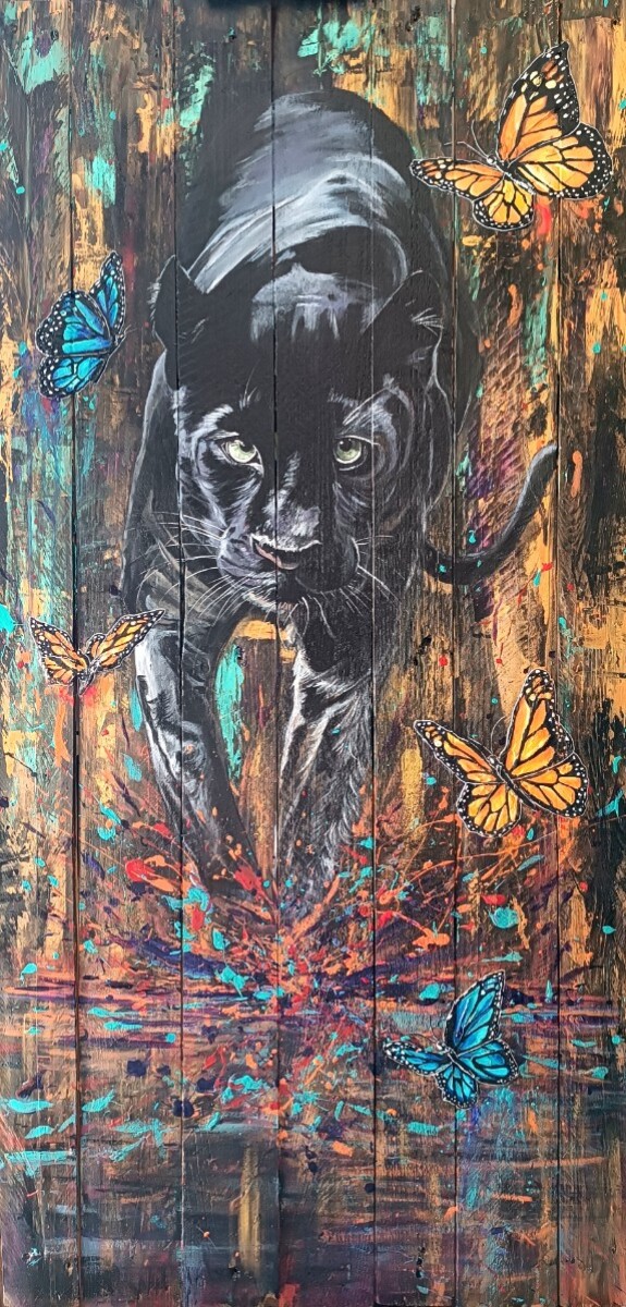 Sur la toile ou bois, elle aime réaliser des tableaux réalistes s’inspirant de la nature, des animaux sauvages et des femmes.