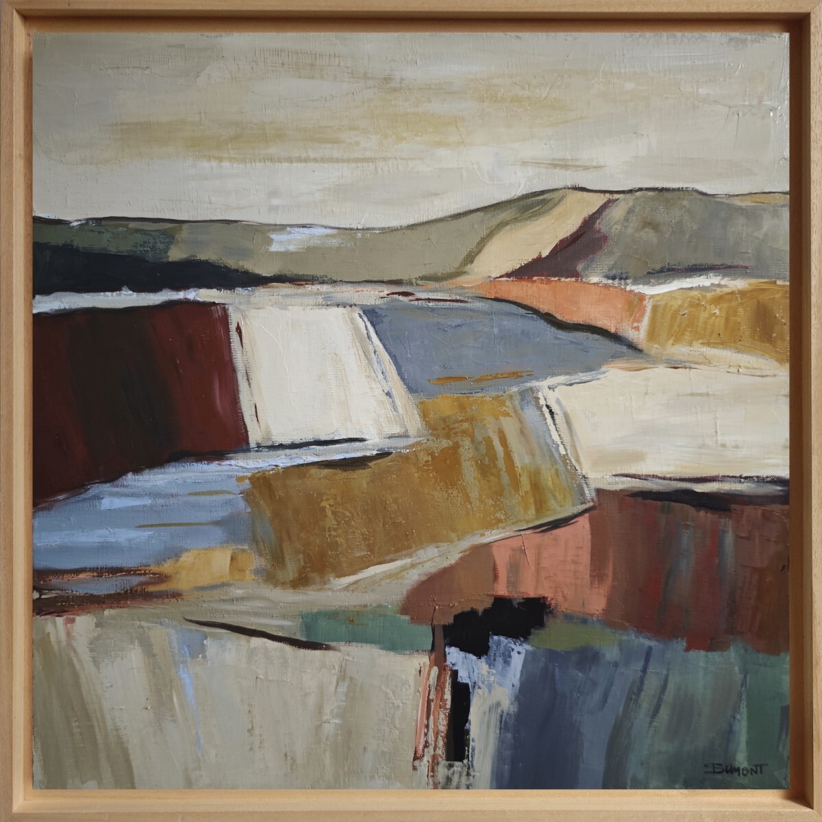 La technique de Sophie Dumont est marquée par l'utilisation de l'huile en couches successives, créant des transparences et des effets de lumière subtils. Le couteau façonne le matériau en couches qui fusionnent dans une combinaison de couleurs chatoyantes, donnant vie à des représentations indépendantes de toute référence directe.
