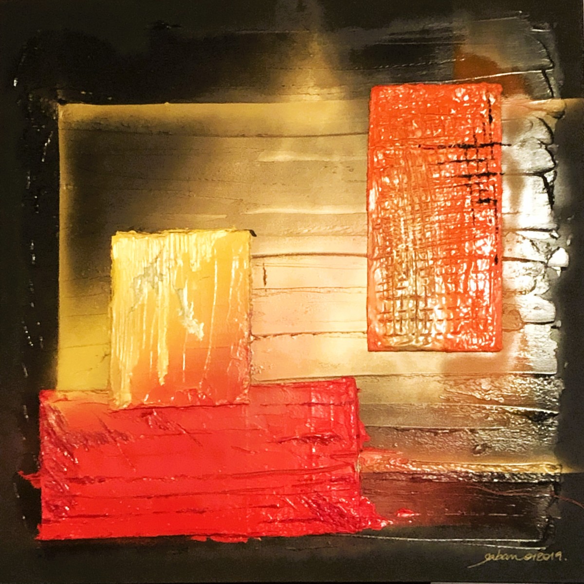 En 2013, une fracture intime ouvre la voie à la création. Naît alors la période EMERGENCE (2013–2017), faite de toiles denses, minérales et telluriques. La matière y est brute, noire, entaillée, comme une terre brûlée qui cherche à se reconstruire. Cette traversée intérieure se déploie dans des expositions confidentielles – notamment dans son atelier de Pierrefonds ou lors de présentations ponctuelles à Paris – qui affirment déjà une écriture picturale singulière.
