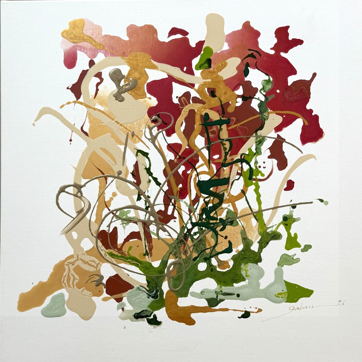 En 2025, s’ouvre la période CONVERGENCE. À Aix-en-Provence, dans l’atelier baigné de lumière de la Maison Ithaque, GABAN explore une autre face de son art : celle de l’apaisement, de l’ouverture, du dialogue intime avec la nature. Les couleurs s’élargissent, les gestes respirent, les masses s’allègent sans jamais perdre en intensité. La nature n’est pas un simple motif, mais une matrice. Dans les rouges telluriques, les verts mousse, les ors éteints, l’artiste cherche moins à représenter qu’à faire surgir – une topographie intérieure, une cartographie du vivant.