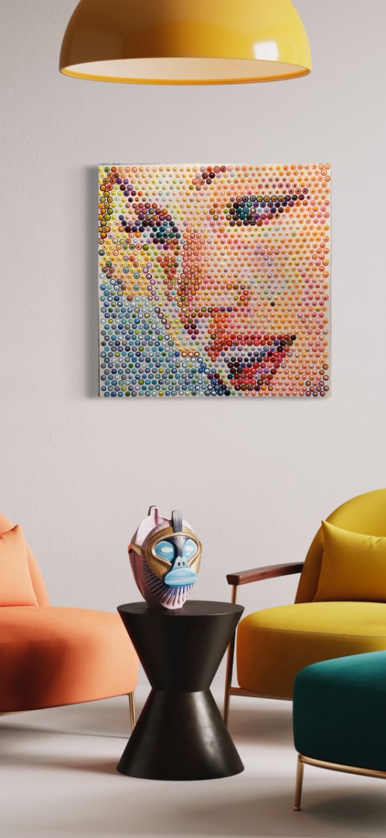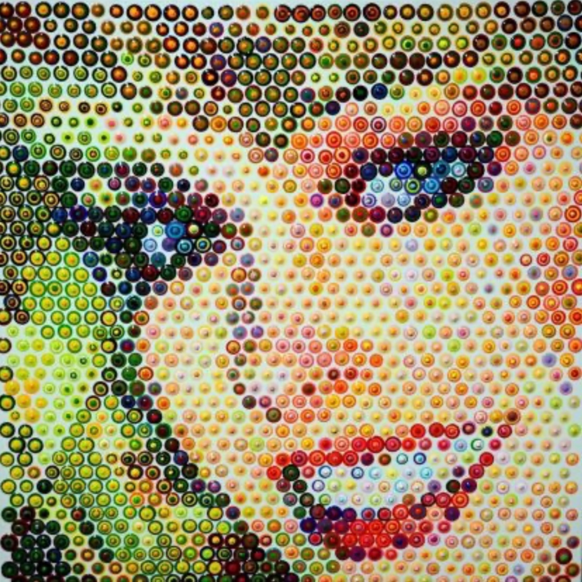 Sa technique consiste en une hyper pixélisation des visages de personnalités connues ou de particuliers. Ses couleurs vives et ses cadrages audacieux nous invitent à reconsidérer le portrait d’une manière résolument moderne et fascinante.