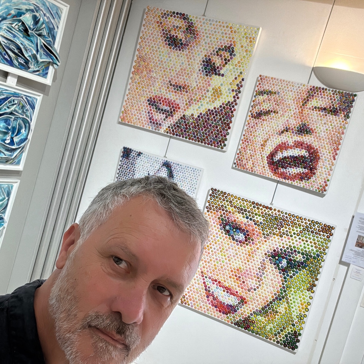 Au hasard de rencontres dans le domaine de l’art, il découvre le néo-pointillisme et crée sa propre méthode. Ses portraits ont évolué et son devenus des œuvres uniques dont la perception varie en fonction de la distance à laquelle ont les admires.