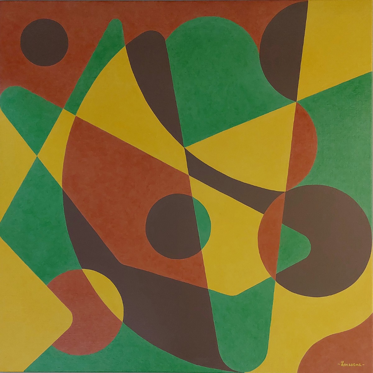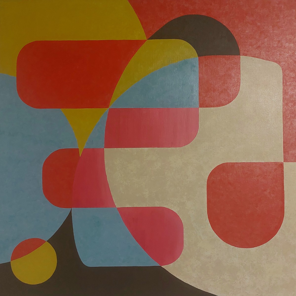 Mais certaines pièces s’affranchissent de cette densité pour explorer des fonds neutres, silencieux, où la forme géométrique et la ligne intuitive s’imposent avec force. Dans ces compositions, le dessin devient architecture visuelle, une sculpture plane faite de tensions, de rythmes et de résonances colorées.