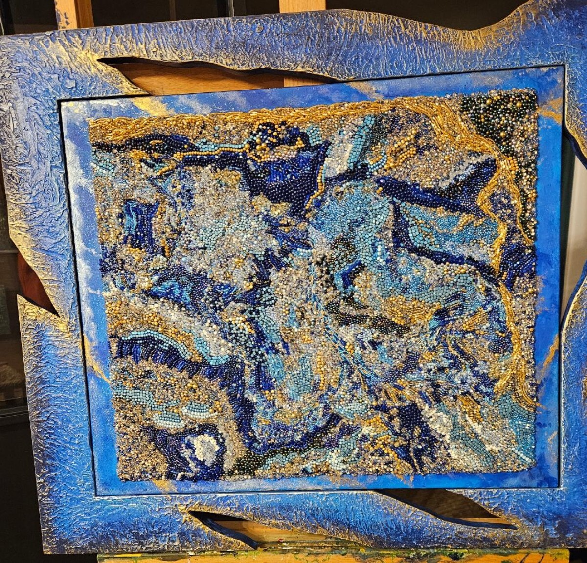 LA TERRE. 40X40. DES MILLIERS DE PERLES EN VERRE ET EN CRISTAL COUSUES DANS LE TOILE DE LIN (4).jpg