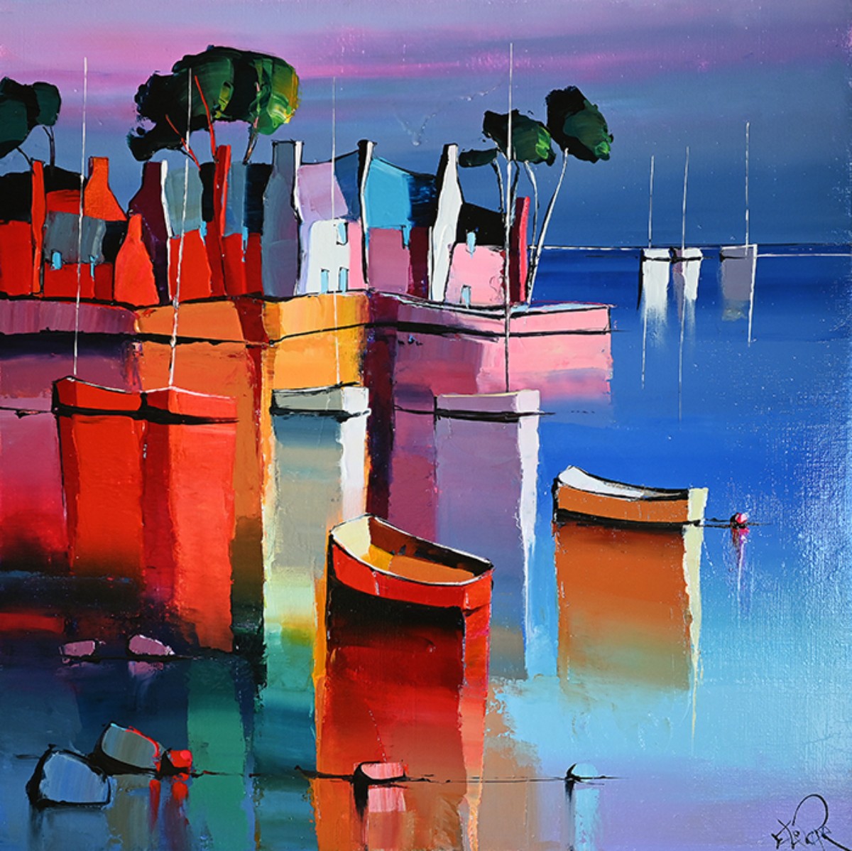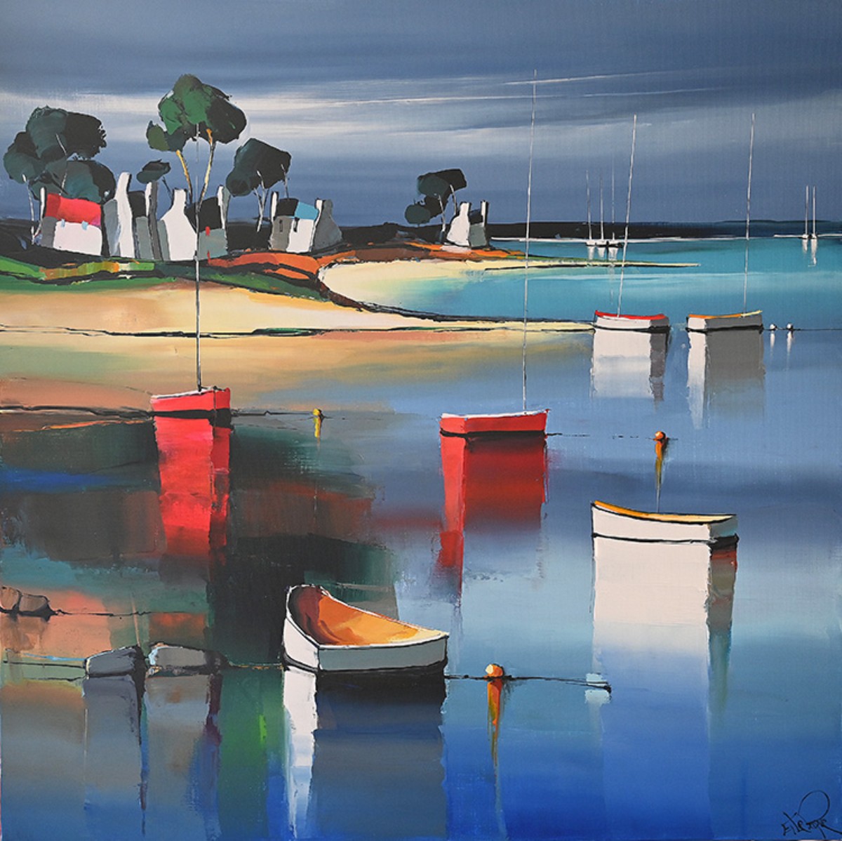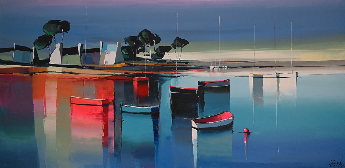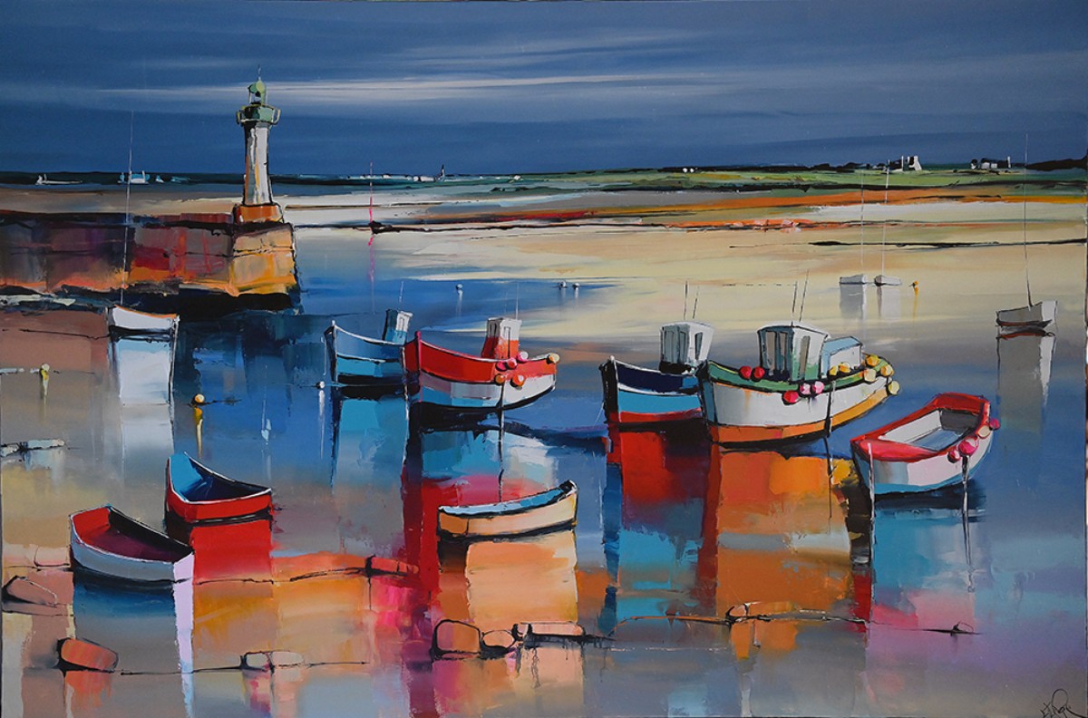 J’ai trempé dans la couleur dès mon plus jeune âge, les pieds dans le goémon et les mains libres pour traiter à grands coups de couteaux, largement chargés de matière, les bleus outremer et céruléum. Très vite, à 4/5 ans, mon entourage remarque mes aptitudes à décrire tout ce qui m’entoure, à le dessiner encore et encore avec une énergie débordante. Ce regard de jeune breton tourné vers l’immensité de l’océan n’avait qu’un seul souhait «apprendre», en fréquentant les Beaux-Arts et les musées à la découverte et recherche d’univers inspirants. Ma palette ayant donc exprimé rapidement les couleurs de la mer, c’est très naturellement et grâce à cette volonté de ne pas quitter cet environnement que je me suis, dans un premier temps, dirigé vers une carrière maritime. La seconde période est la concrétisation de cette vie d’artiste professionnel mûrement attendue, travaillée dans l’ombre et qui a débuté il y a une dizaine d’années…