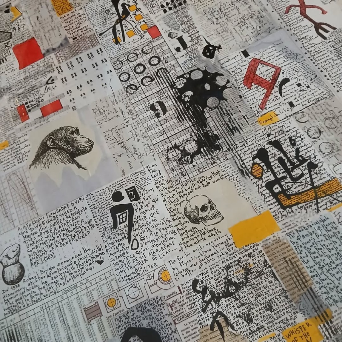 Sébastien Levigne utilise un mélange de peinture et de collage pour explorer le thème urbain. Son travail se concentre principalement sur le motif des murs et des traces laissées sur ses murs par l'Homme. Les lettres et les éléments symboliques sont des caractéristiques majeures de son travail: chiffres, expressions quotidiennes et familières, évocation de l'évolution et la réussite telles que l’échelle, l’escalier ou la marelle.