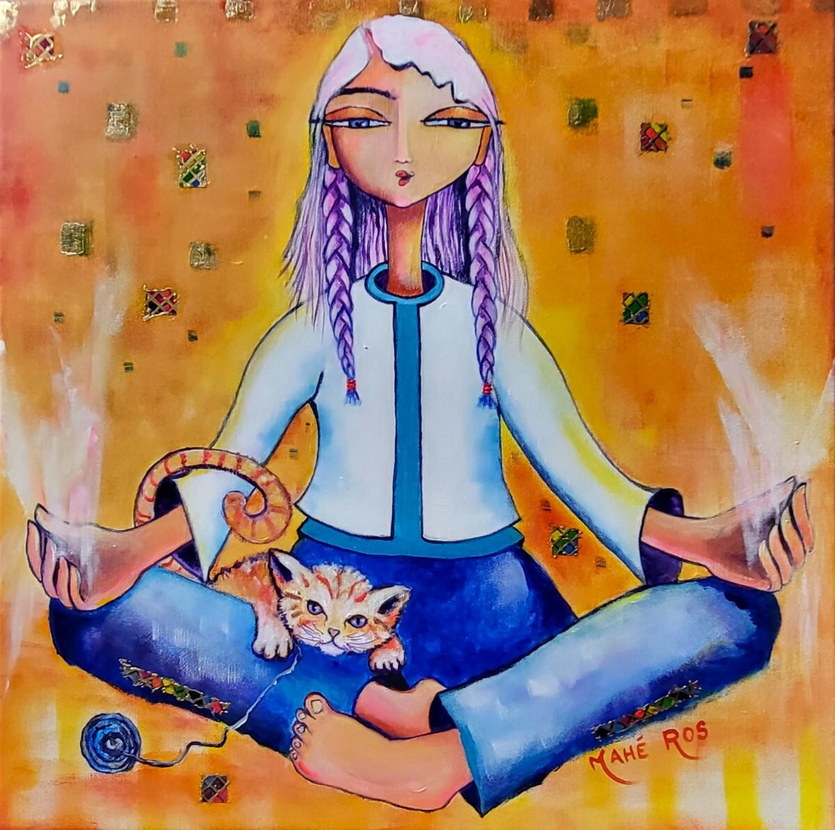 Ce que dit l'artiste d'elle : Je pénètre comme une curieuse dans chaque tableau que je réalise… Je vis cela de l’intérieur comme une aventure qui me fait rentrer de l’Autre côté du miroir… De ce hors temps, chaque tableau me fait vivre son aventure. Je pénètre dans chacun d’eux, dans leurs couleurs et leurs formes comme une assoiffée sans faire d’efforts, tout simplement. Me faisant UNE avec ma création, mon âme vibre et se projette dans le tableau. Ainsi, l’Ailleurs m’est accessible et je peux y puiser la substance créatrice dont mes tableaux sont empreints.