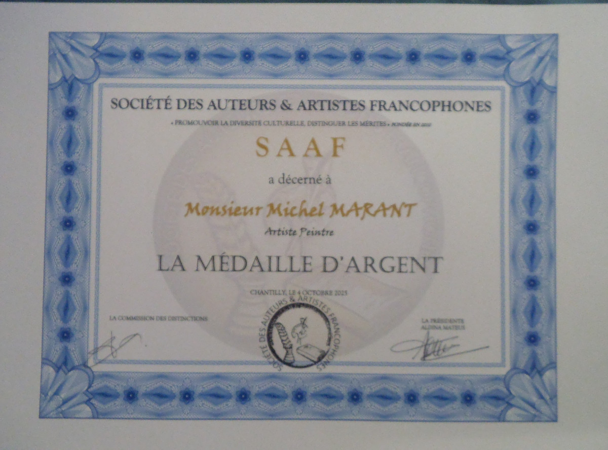 ACADEMIE ARTS-SCIENCES-LETTRES PARIS - m'a décerné la médaille d'argent