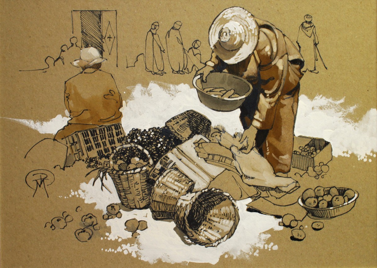 Dessin. L'affaire est dans le sacs. Plume et lavis. 30x40.jpg
