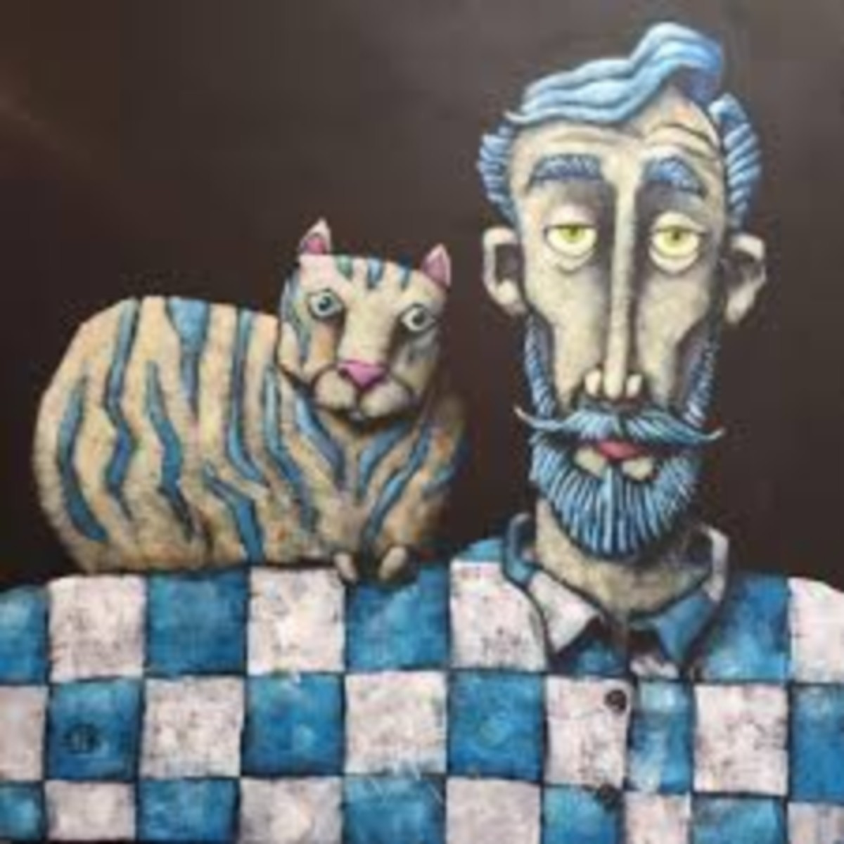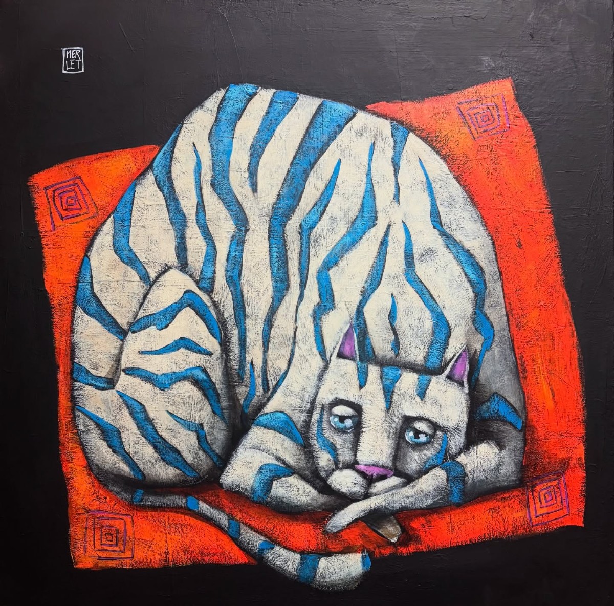 Rencontres complices entre l’homme et l’animal, portraits humoristiques, personnages caricaturés aux corps gonflés, figures animales sur fond de mosaïques et d’arabesques, Pascal Merlet a su créer son propre monde pictural reconnaissable dès le premier regard. Il nous séduit par cet univers singulier, la remarquable qualité de sa peinture foisonnante de détails minutieux, sa palette subtile, ses sublimes nuances patinées. L'artiste.