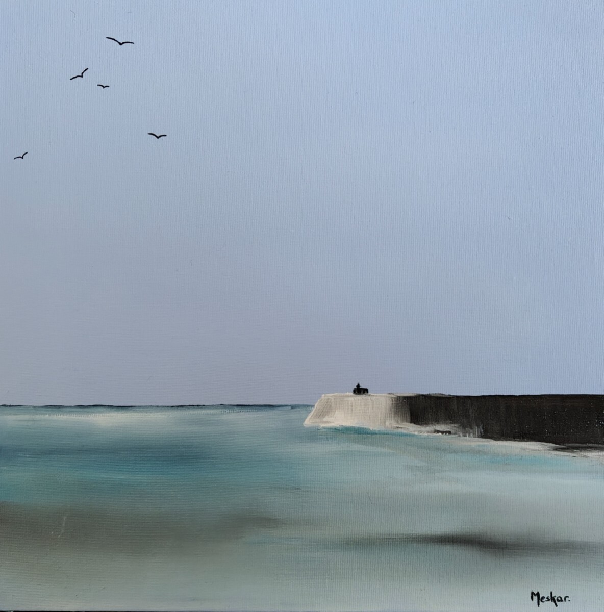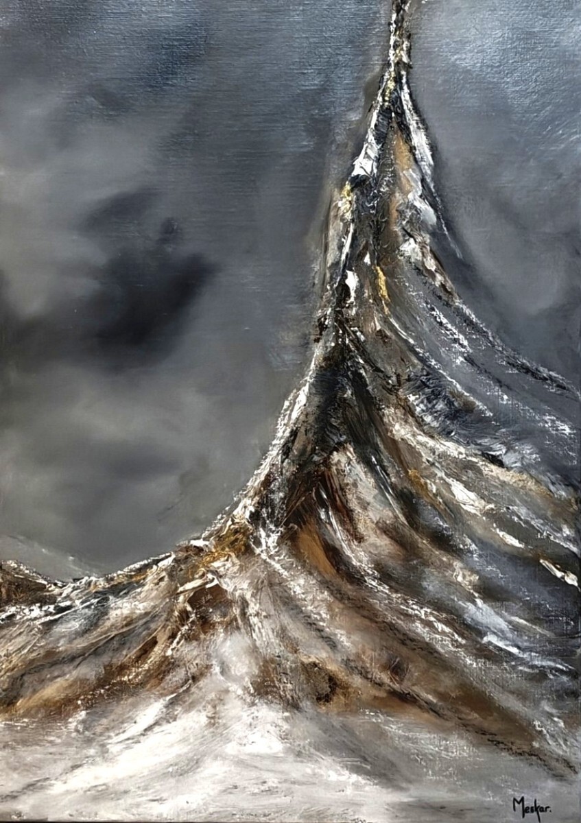 Chaque peinture représente une technique artistique précise, et le sujet qui y est abordé une émotion ressentie dans l'instant de sa création ... un voyage intérieur, l'expression d'un reflet de l'âme au moment de la création de la toile, une alchimie, un travail des couleurs que Meskar affectionne dans son exploration créatrice pour atteindre les rivages d'une terre inconnue : le tableau final.
