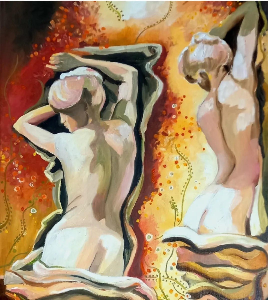 Pluridisciplinaire, c’est en l’huile qu’elle révèle toutes ses émotions , ajoute des inclusions de feuilles d'or. Refusant de se contaner à un sujet unique, elle préfère explorer une création libre et sans cesse renouvelée. Une personnalité que l'on définit souvent de solaire autant que l'emotion dégagée par ses oeuvres.