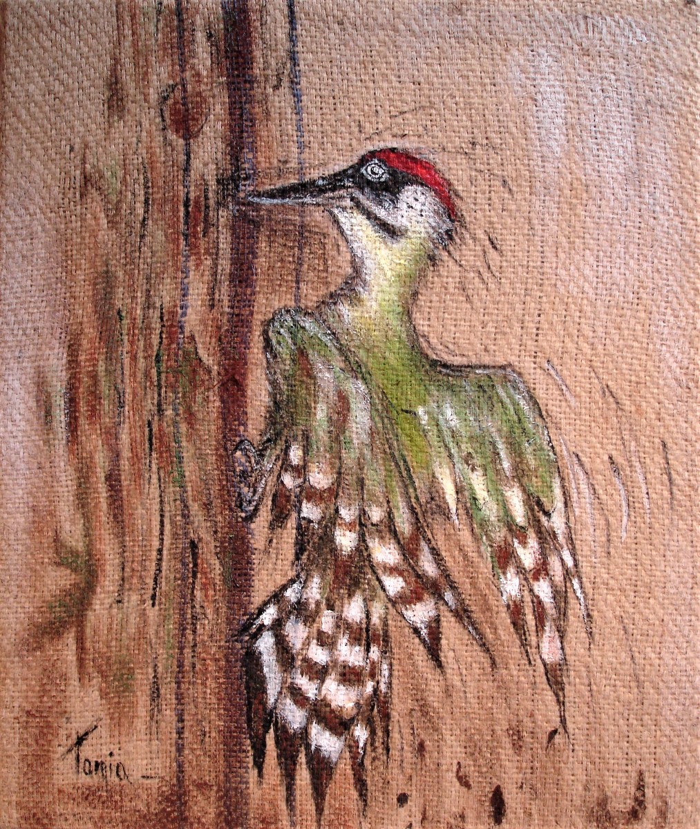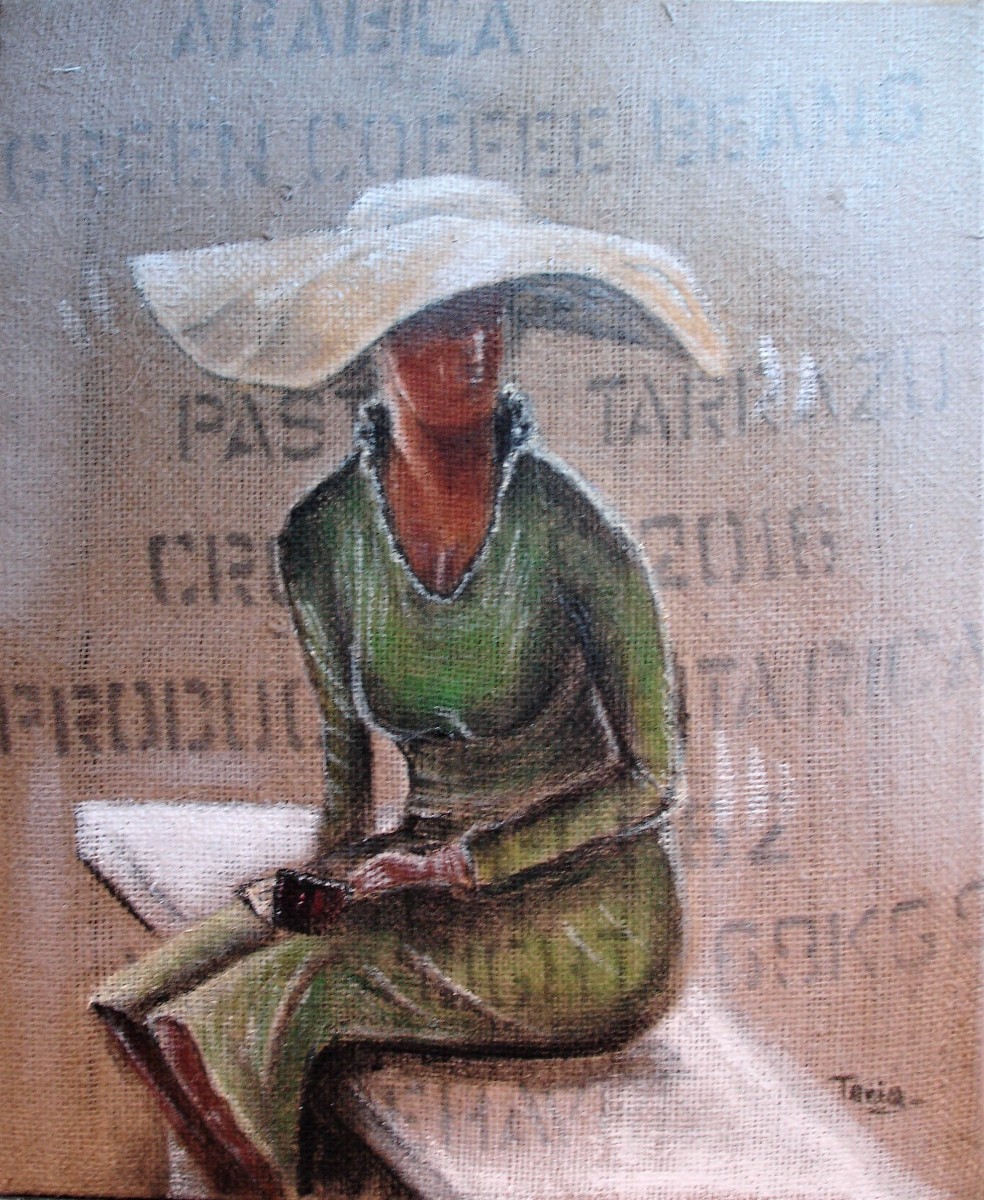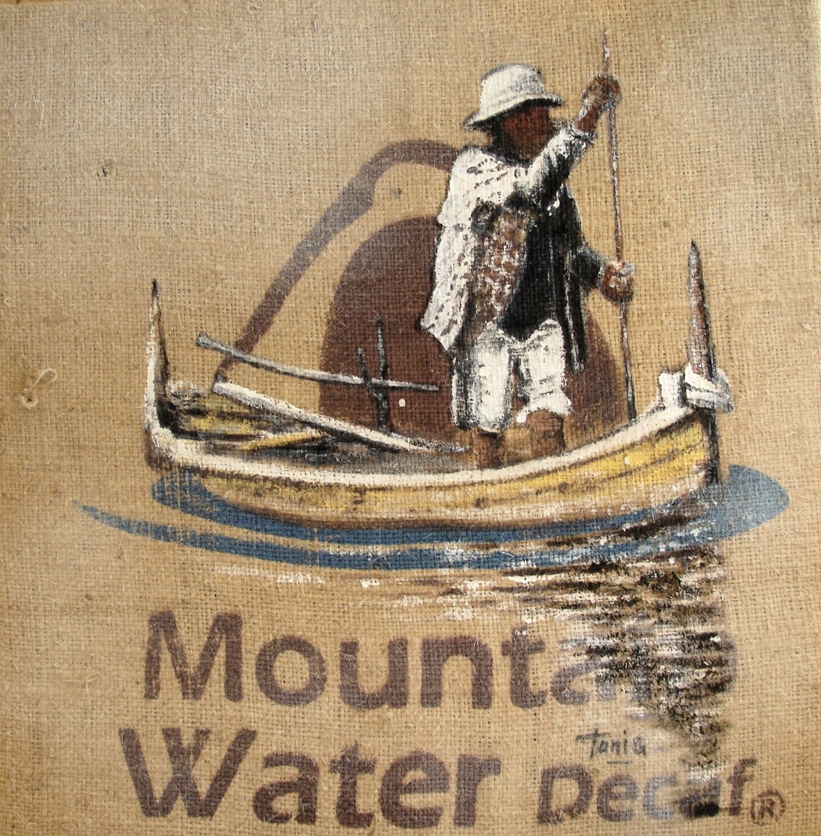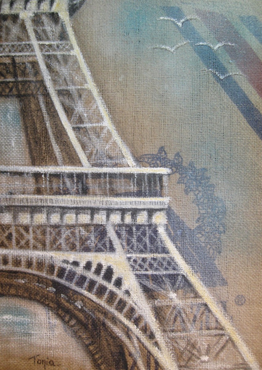 Ainsi donc, je fabrique les supports que je peins ensuite, et j'entre dans le monde du recyclage "upcycling" artistique, que je nomme parfois le "coffee-bag art".