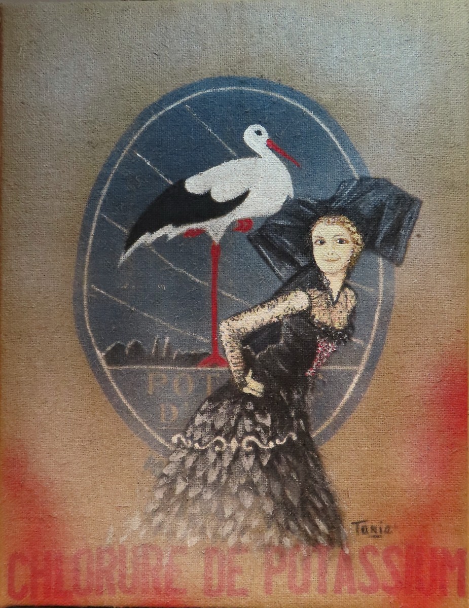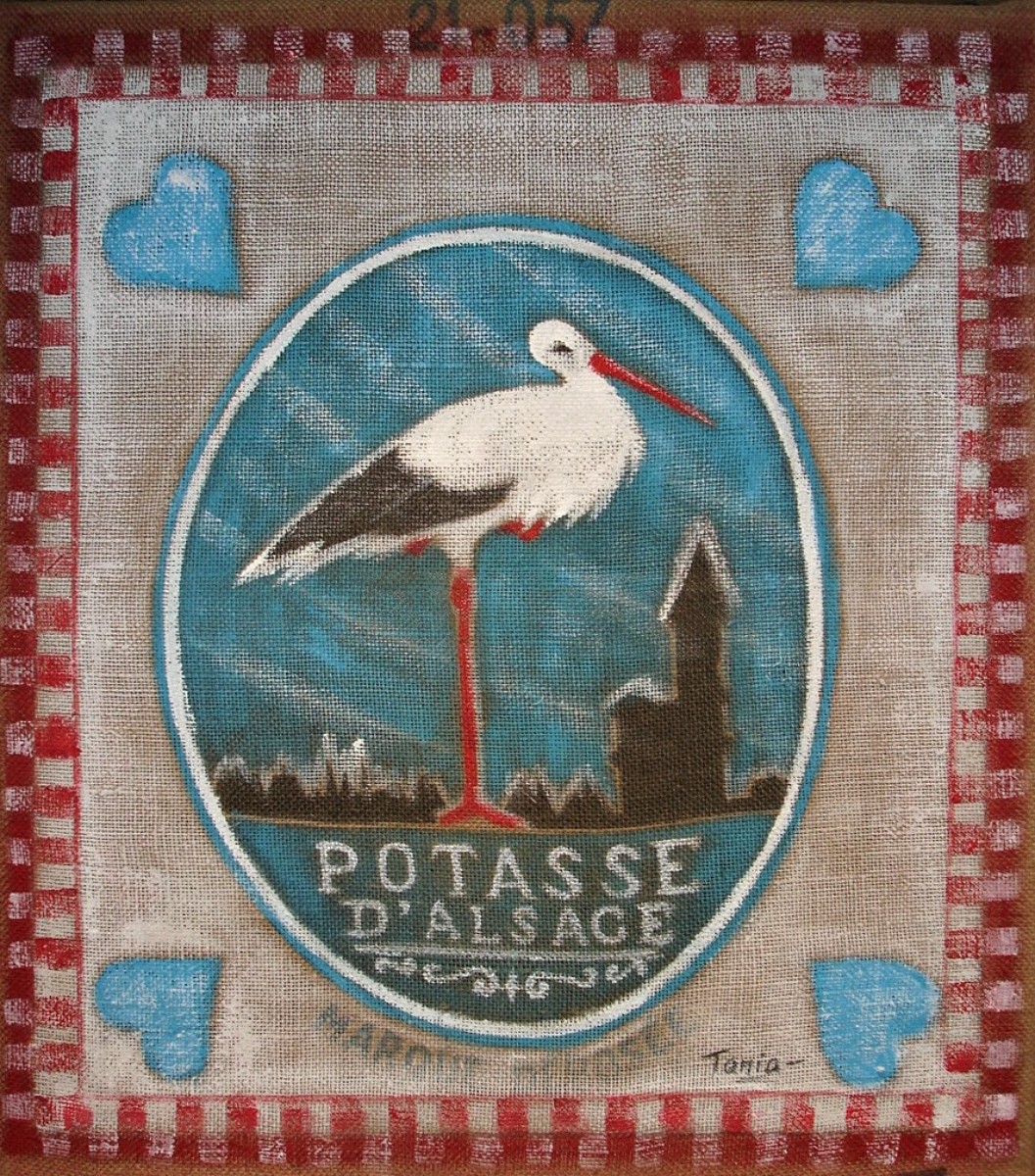 J'expose également en solo, dans toute l'Alsace. Au total j'expose chaque année 10 à 12 fois dans des lieux qui correspondent à l'aspect rustique-chic ou vintage de mes oeuvres peintes sur toiles de jute recyclée .