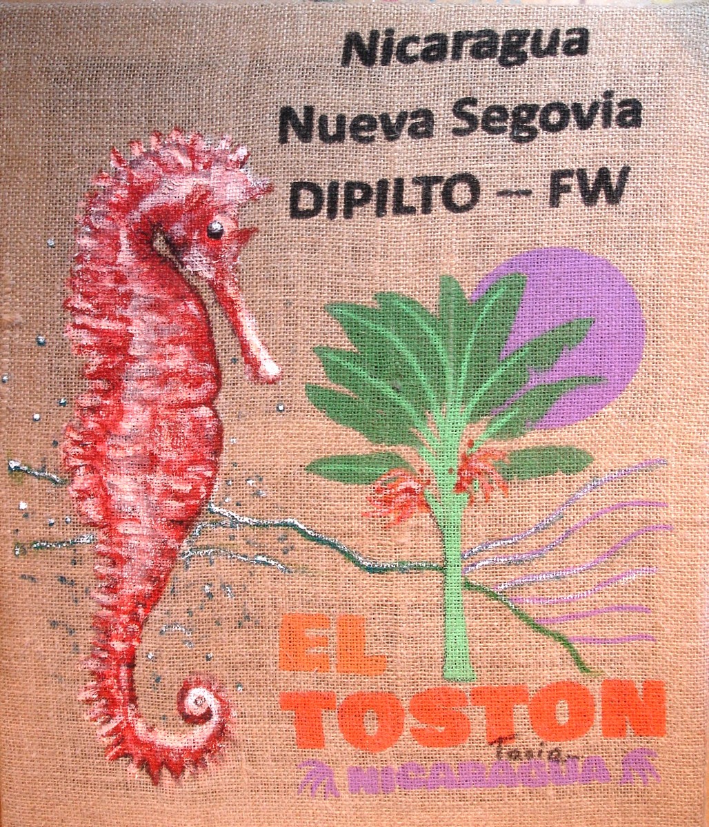 En 2014 je découvre l'intérêt des sacs de café et autres grains, dont la toile de jute imprimée m'inspire pour donner une nouvelle vie à ces sacs ayant fait le tour du monde.