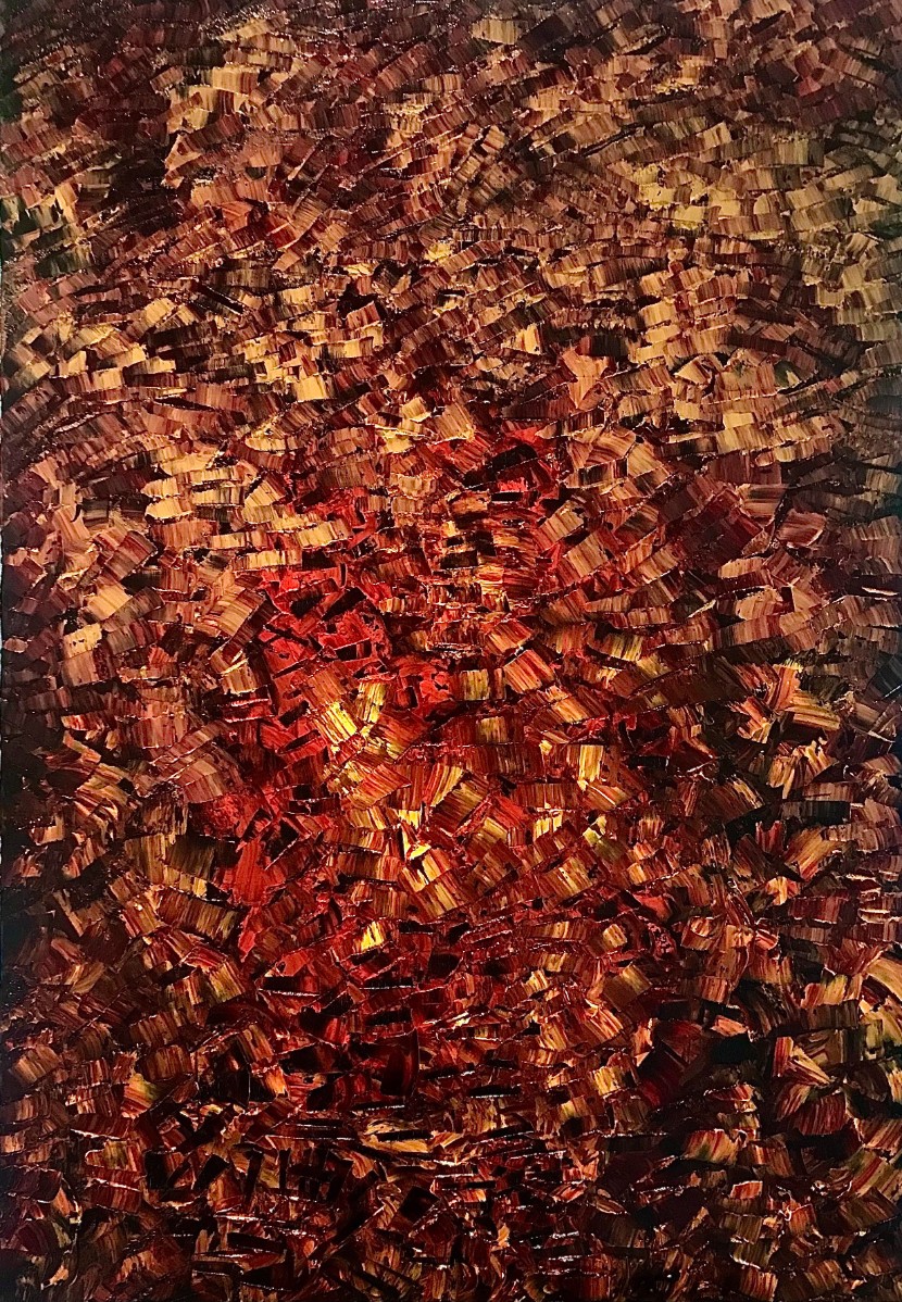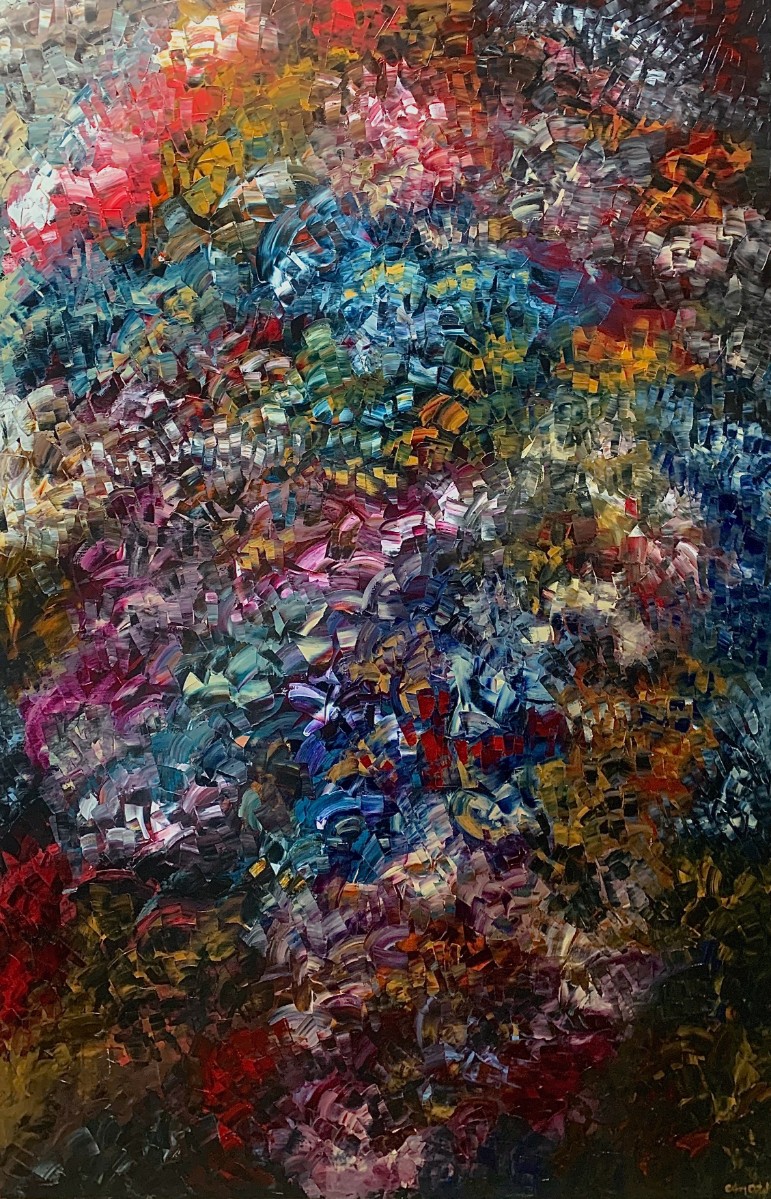 Transfiguration et abstraction : Le "Transfiguratisme Abstrait" désigne une approche artistique où l'œuvre ne se limite pas à la simple matérialité de la toile. L'idée est que la peinture transcende le physique pour devenir une sorte d'expression infinie, comme les atomes qui s'unissent pour former un tout. Cela évoque une vision où l'abstraction transforme le sujet et révèle une nouvelle réalité.
