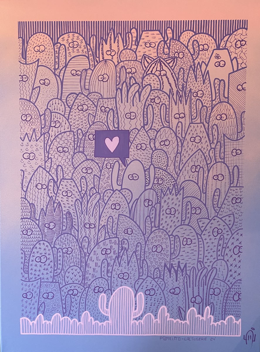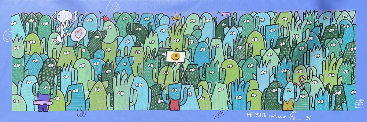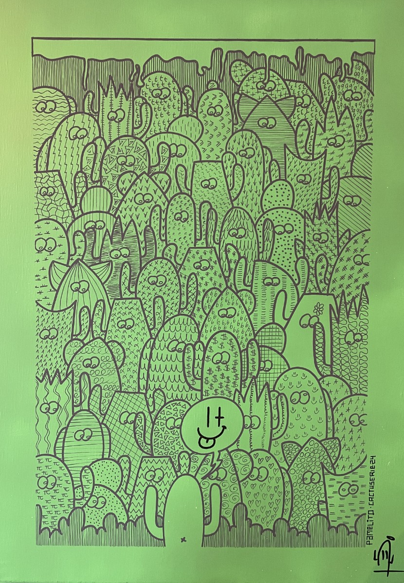 Artiste basé à proximité de la mer méditerranée depuis toujours, PAMELITO a depuis longtemps occupé la majeure partie de son temps à dessiner. Son œuvre est marquée par un personnage récurrent, un petit cactus avec des yeux mais sans visage.