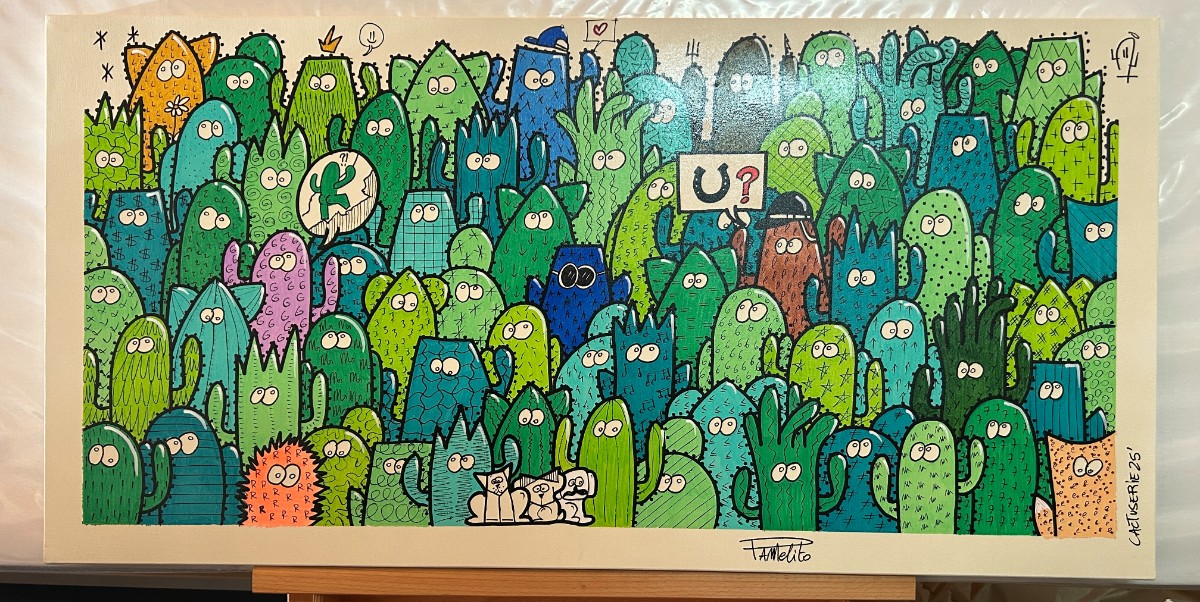 En plus des tableaux, ses cactus prennent place sur des fresques murales ainsi que sur des sculpteures, véritables objets uniques. Plus récemment, à 35 ans, il ouvre sa première galerie éphémère à Montpellier en collaboration avec deux autres artistes, puis réédite l'expérience en solo l'année suivante.
