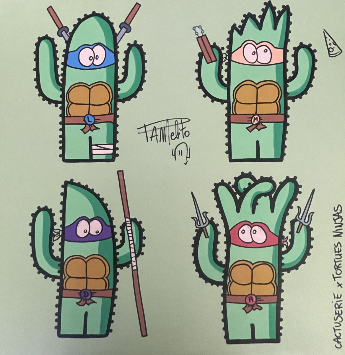 Ce personnage de cactus lui a été inspiré pour la réalisation d’un tatouage en commun avec une amie. Elle faisait collection de ces plantes et régulièrement il lui en offrait. Issus de l’inspiration des mini-cactus, le premier dessin prend place sur sa cheville.