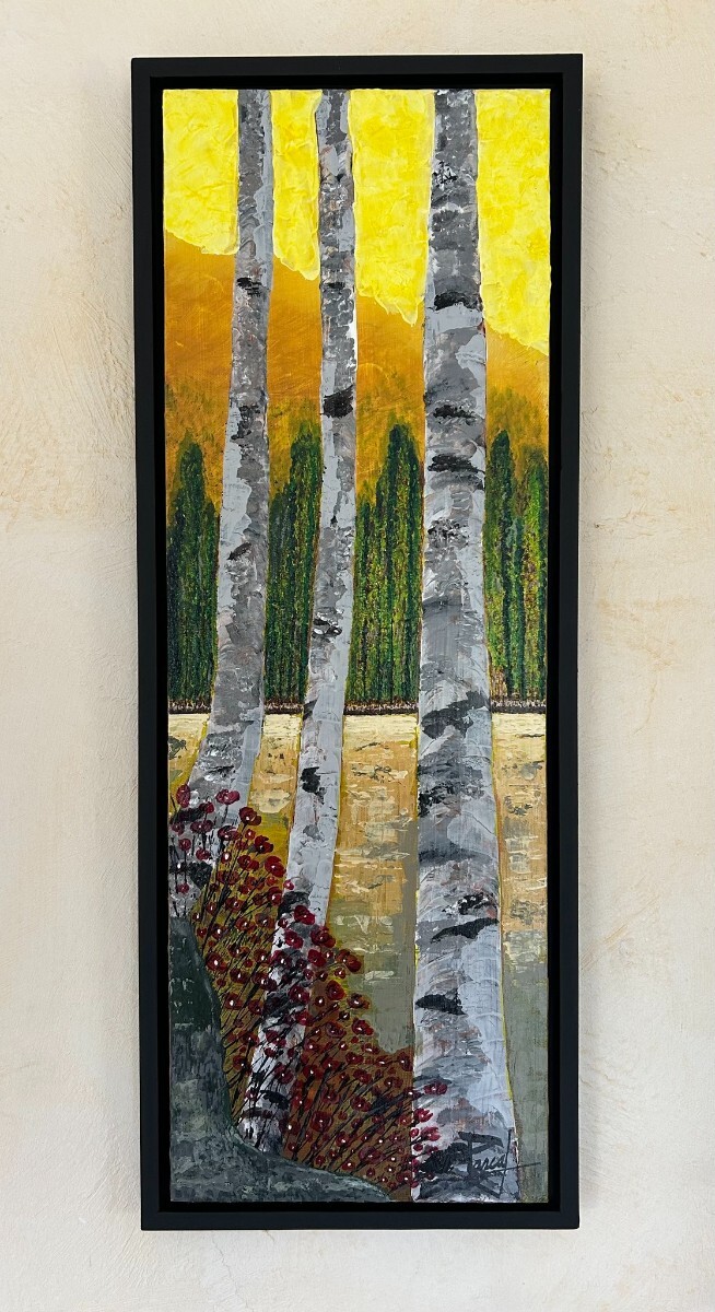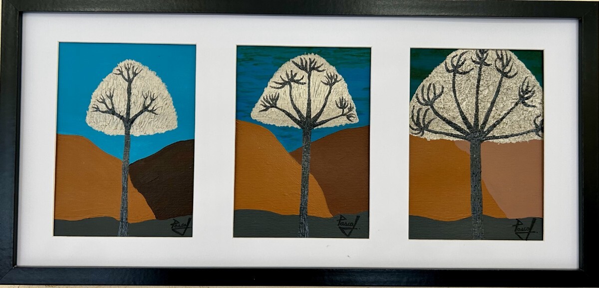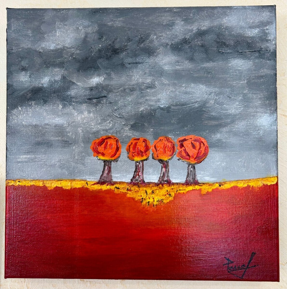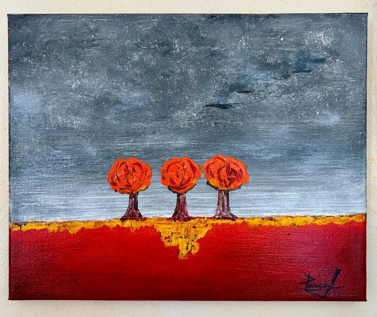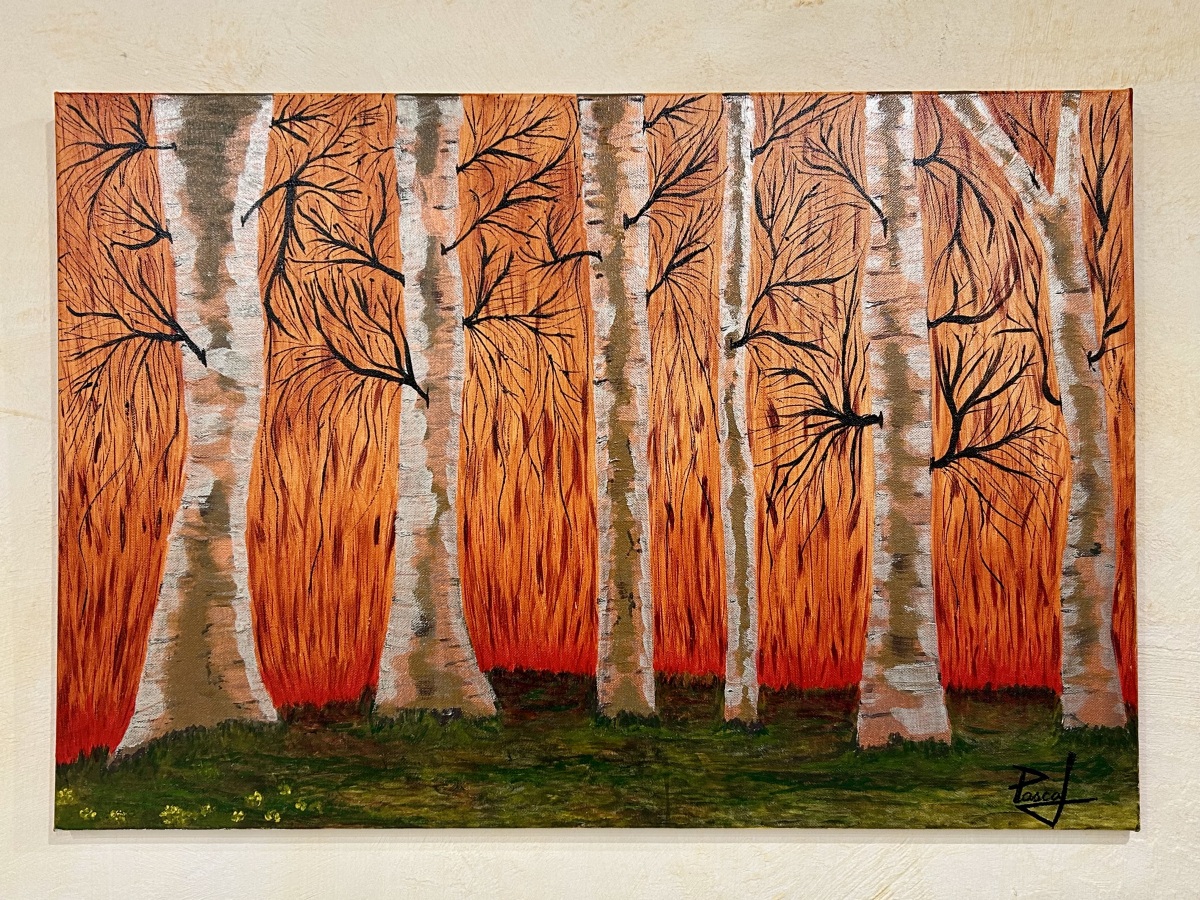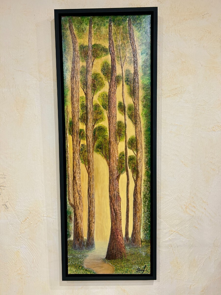 Mon travail s’inspire d’une réflexion personnelle sur la quête de sens, la perte et la recherche de plénitude. À travers les arbres, les paysages intérieurs et un bestiaire poétique lié à certains événements, je montre la nature comme un miroir de l’expérience humaine.
