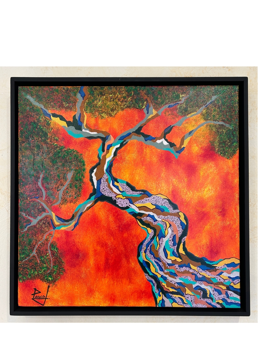 Je me situe entre une peinture expressive par la couleur, une approche symbolique contemporaine et une dimension spirituelle, sans illustration directe. Mon objectif est de transformer mon vécu intime en un langage que chacun peut ressentir et interpréter.