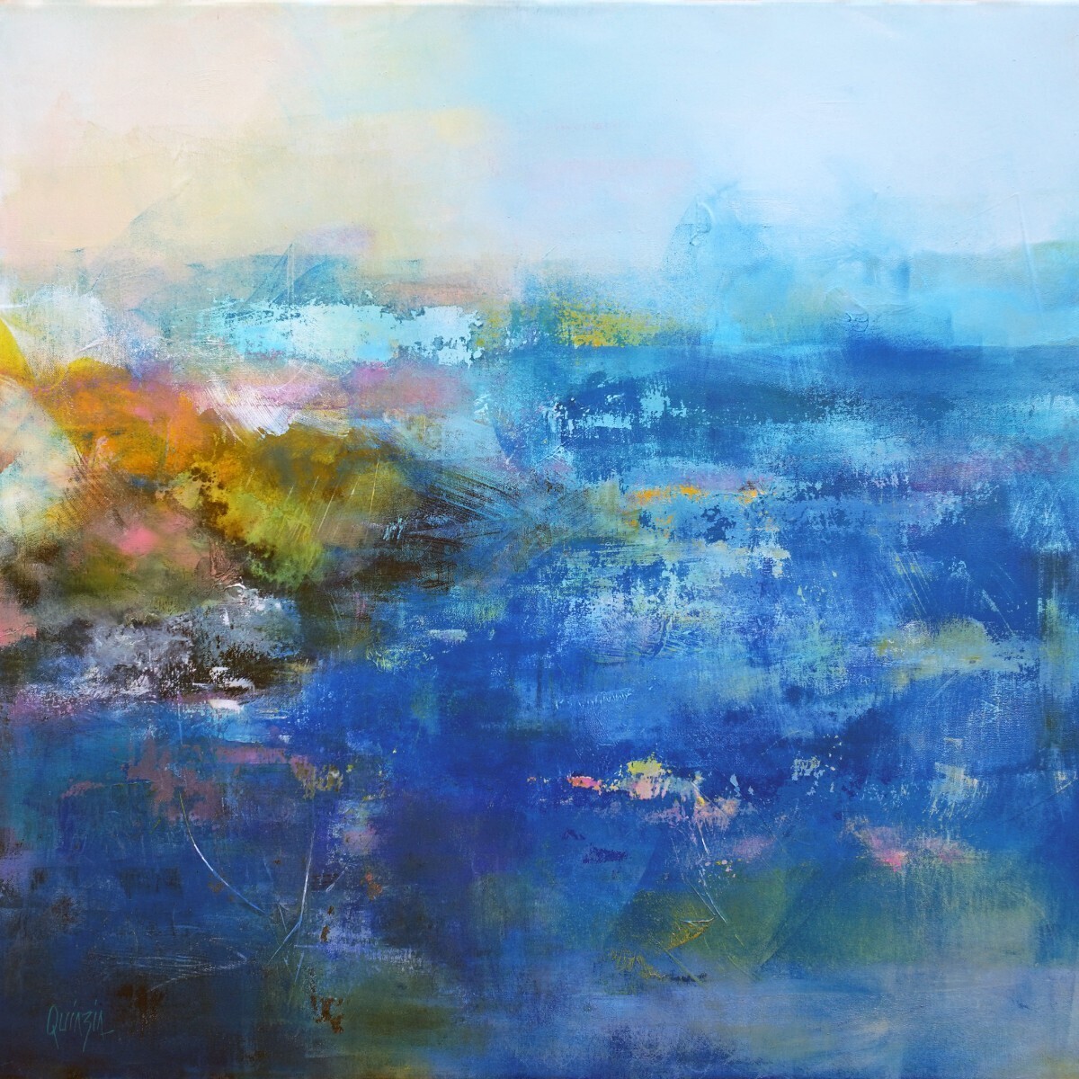 Les mouvements artistiques qui influencent ma peinture sont principalement l'expressionnisme abstrait et l'abstraction lyrique, en particulier le travail de Zao Wou-Ki pour la recherche de la lumière, le jeu de transparence et d'opacité, l'alternance de vide et de plein.