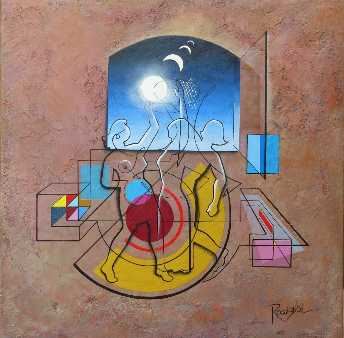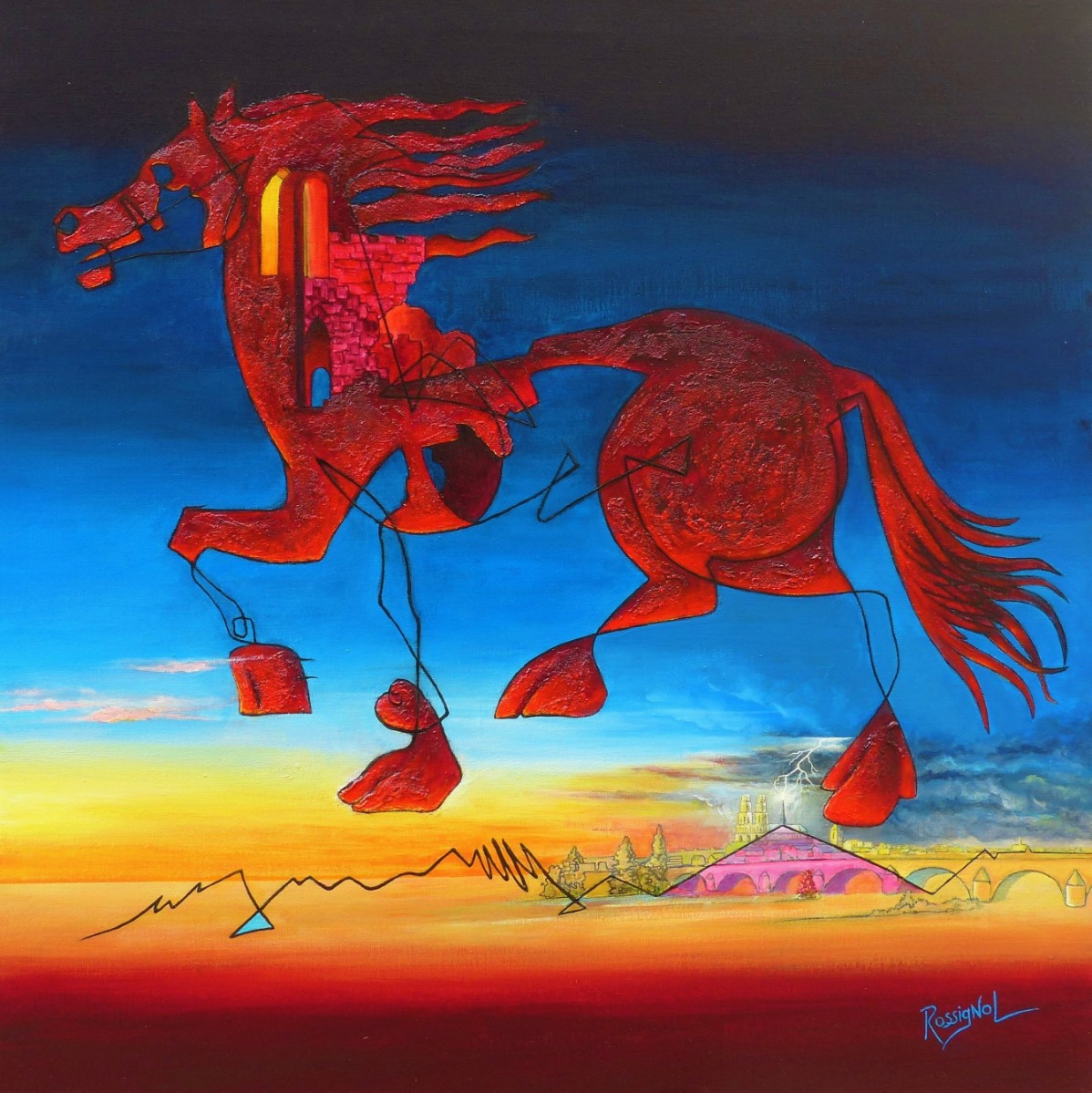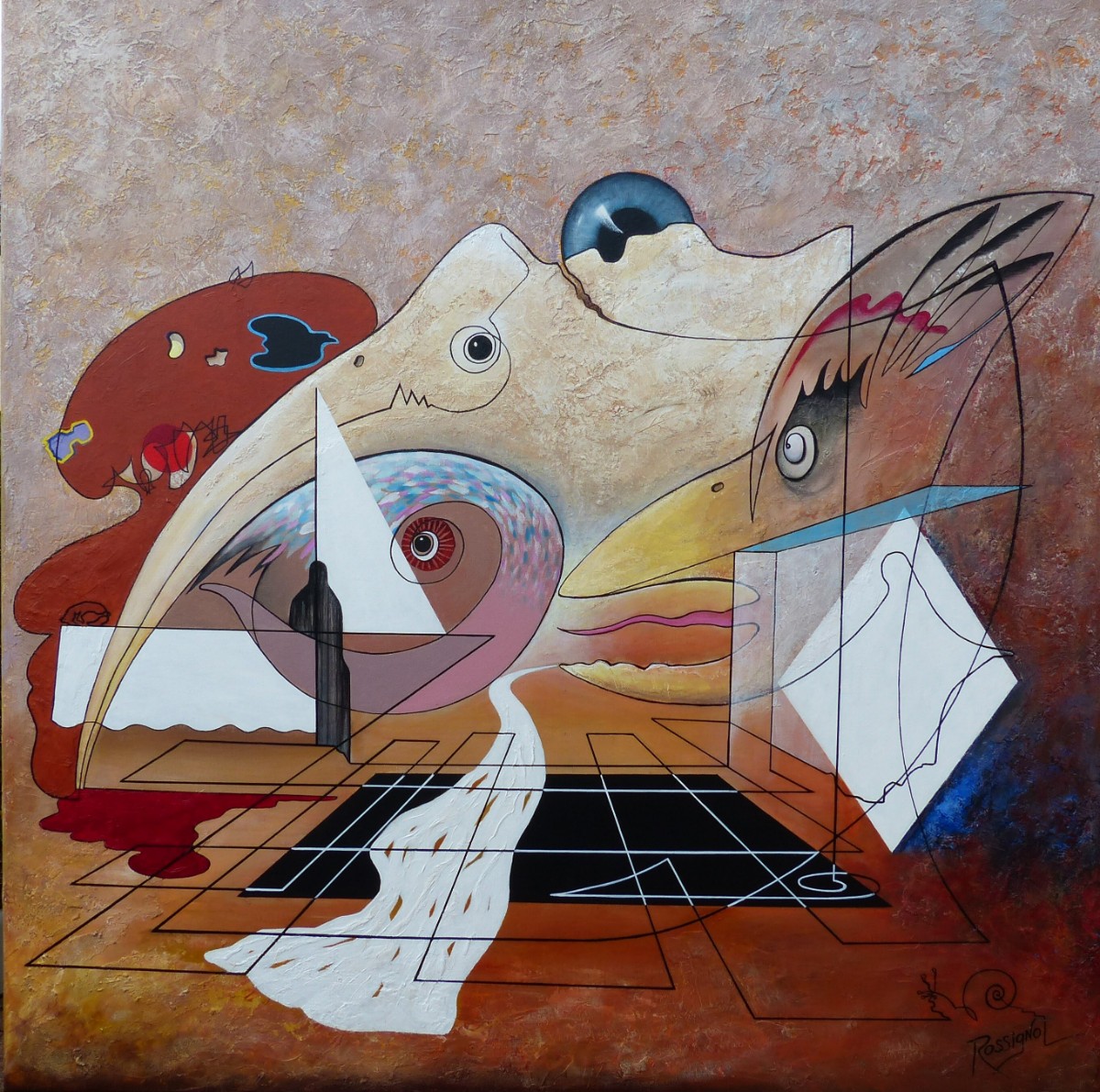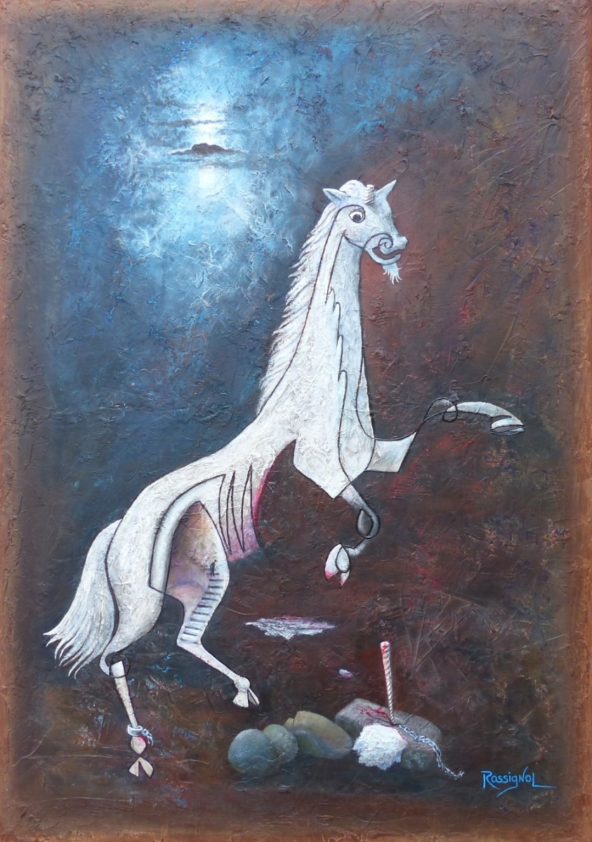 Artiste Peintre Surréaliste - Ma technique: Ma peinture est d'inspiration onirique et d'expression narrative libre. Mon médium de prédilection est l'acrylique et parfois j'y adjoint des collages et d'autres matériaux comme le sable, on parlera alors de technique mixte.