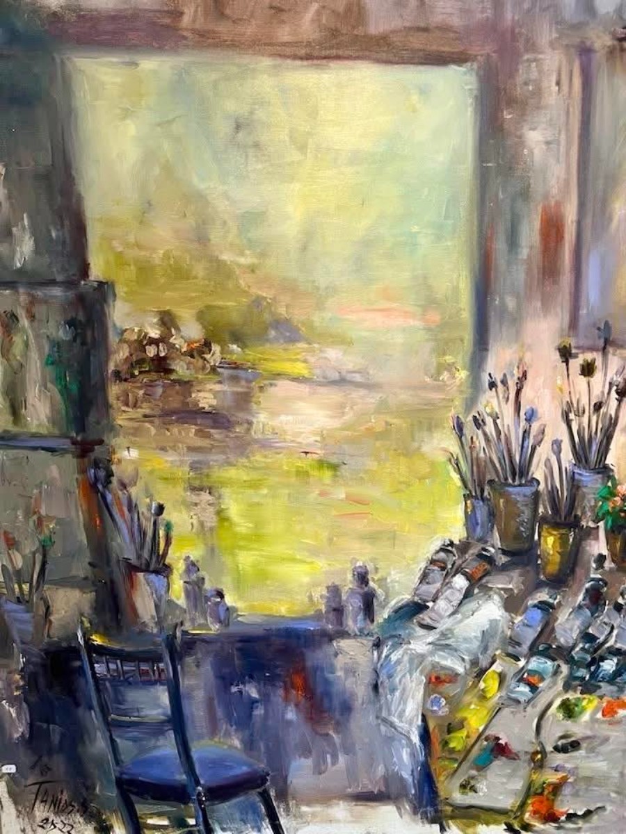 L'artiste porte en elle, les paysages et ambiances méditerranéennes, les ruelles et terrasses de Beyrouth s’animent sous son pinceau, tout comme ses doux visages aux regards nostalgiques. Sur les murs de son atelier, des toiles grands formats travaillées à l'huile mélangée à la poudre de marbre et des pigments de couleurs. Céramiques, bustes, jarres en terre cuite, dessins à la mine de plomb, autant de supports d'une expression artistique, autant de témoins de l’éclectisme de l’artiste, qui invitent à la rencontre d'une attachante personnalité.