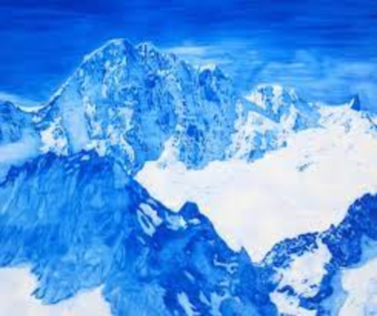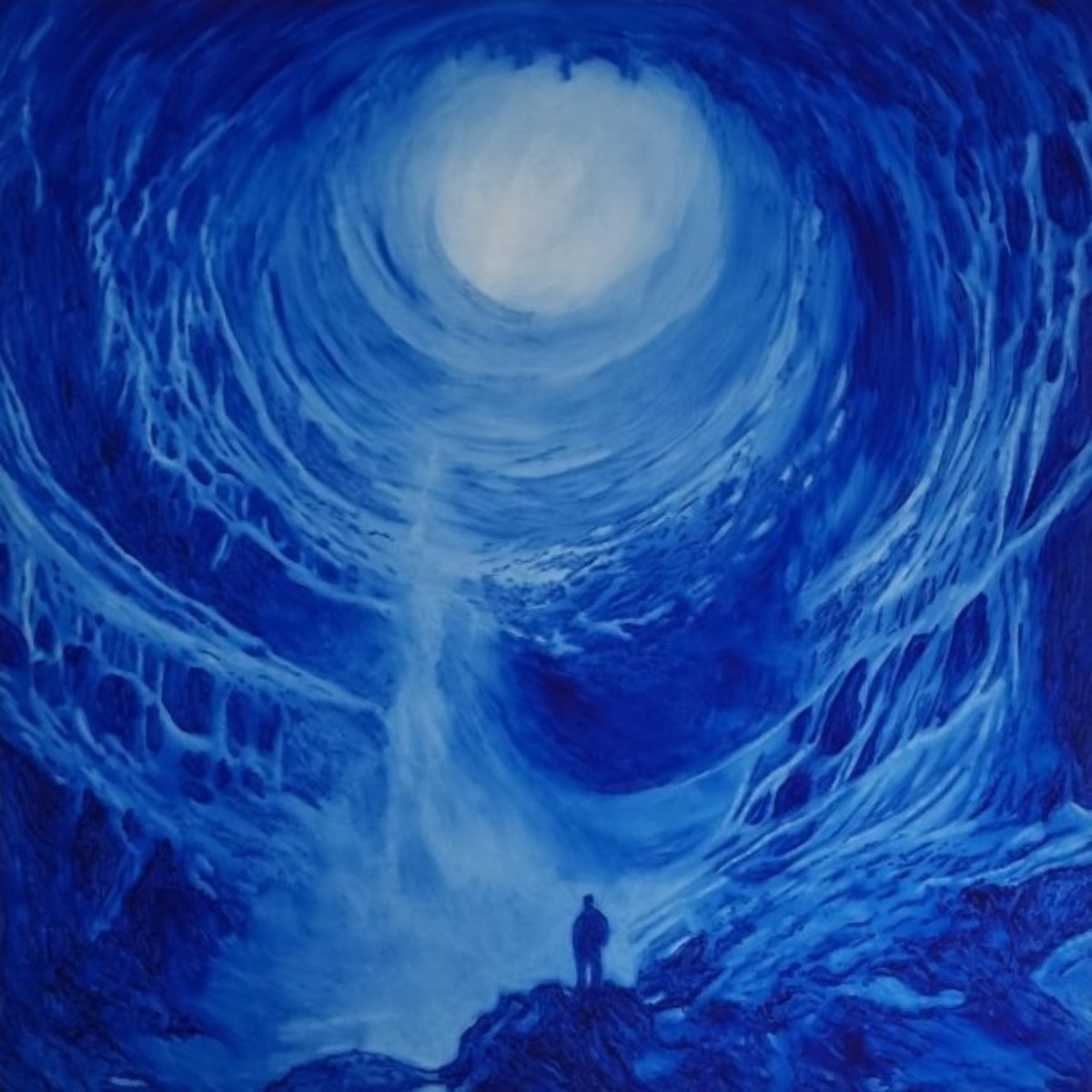 De cet incident né une inspiration et une fascination de la montagne traduite par une couleur : le bleu ! « Je veux que l’on rentre dans l’oeuvre, que l’on s’immerge, que ce bleu vous sature, vous enivre, vous fasse perdre vos repères. Un bleu apaisant sans aucune trace de blanc, qui répond à mon combat contre mon Horla qui s’habitue à moi, qui a compris ma résilience ».