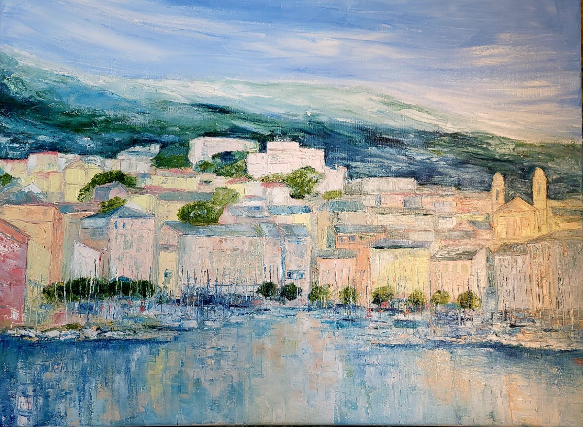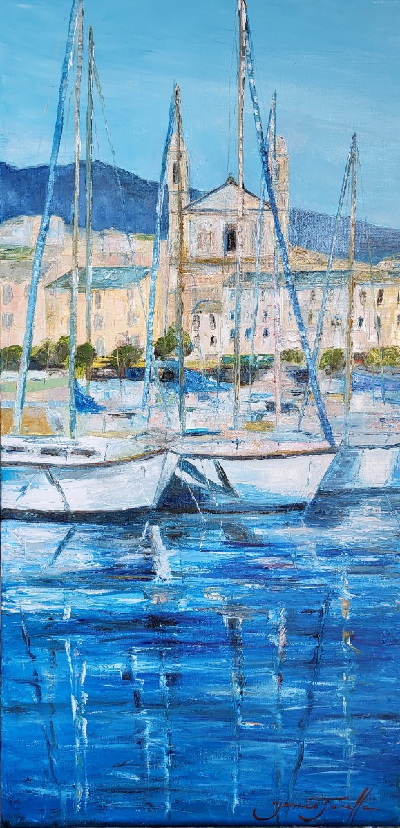 Femme Corse Plasticienne à la polarité masculine, tend ses connaissances artistiques au but d'atteindre la sagesse, clé ultime. Ses huiles diffusent de rassurants rayons porteurs de vie, signification positive, délicatesse du bon goût de l'harmonie. Les nuances de ses teintes sombres au clair privilège des couleurs pures, élaborent l’essentiel, le serein et l’émouvant impressionnisme de sa peinture... » C.Jarecki